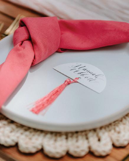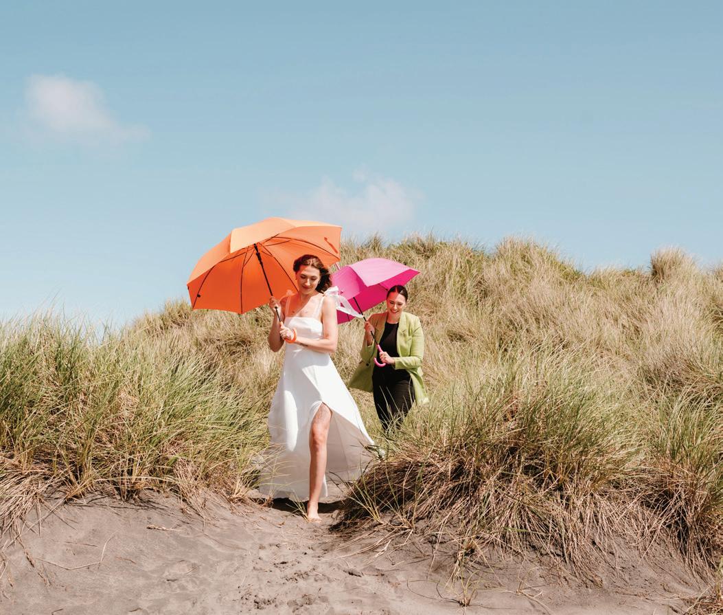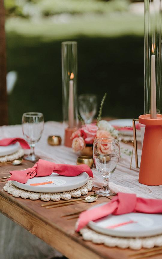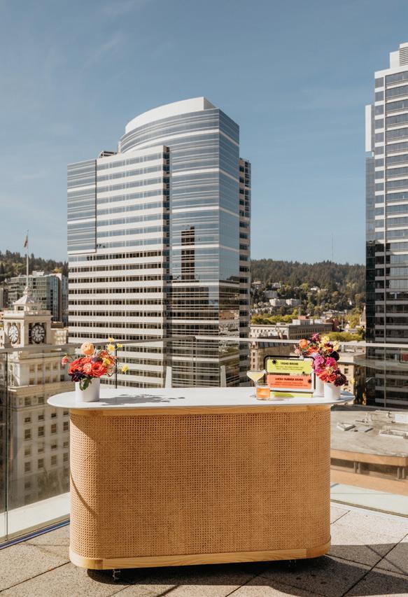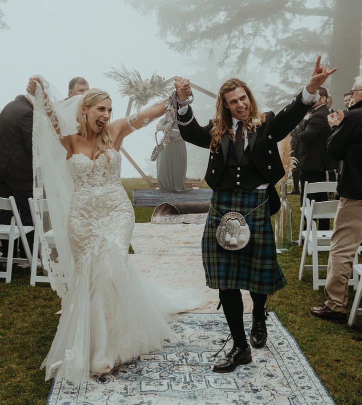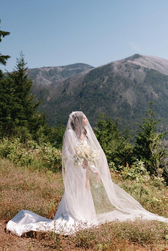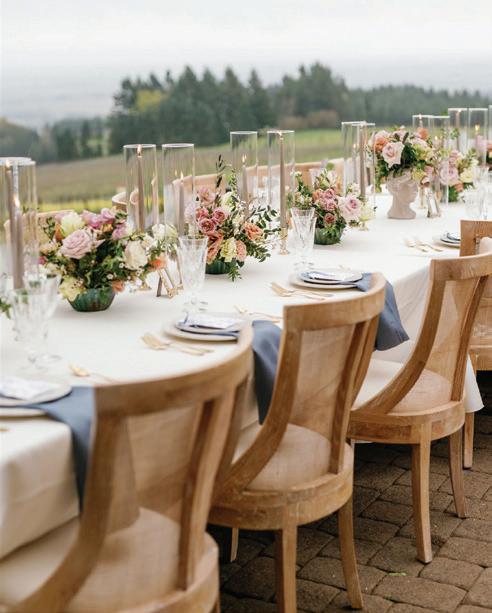 Décor is anything but blasé these days. Hanging installations, loud linen prints, unexpected elements, textures, colors and so much more—they’re all fair game to perfectly reflect the couple tying the knot. This season’s hottest trend, draping, was on full display in our editorial “Swept Away” on page 42, where Your Perfect Bridesmaid and a curated team served up ALL the romance and whimsy at Oregon Golf Club. Then, color reigned on the Departure rooftop, with Lemonseed Events delivering an outstanding intimate party on page 52. And lastly, we explored the mystical spirit of the Gorge in “Gone With the Wind” on page 60.