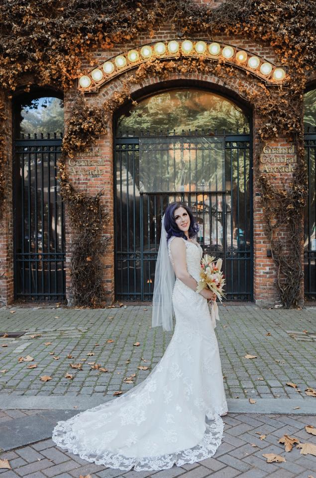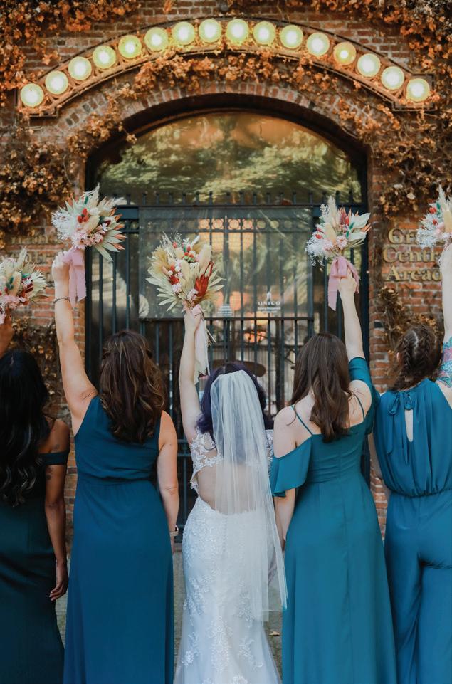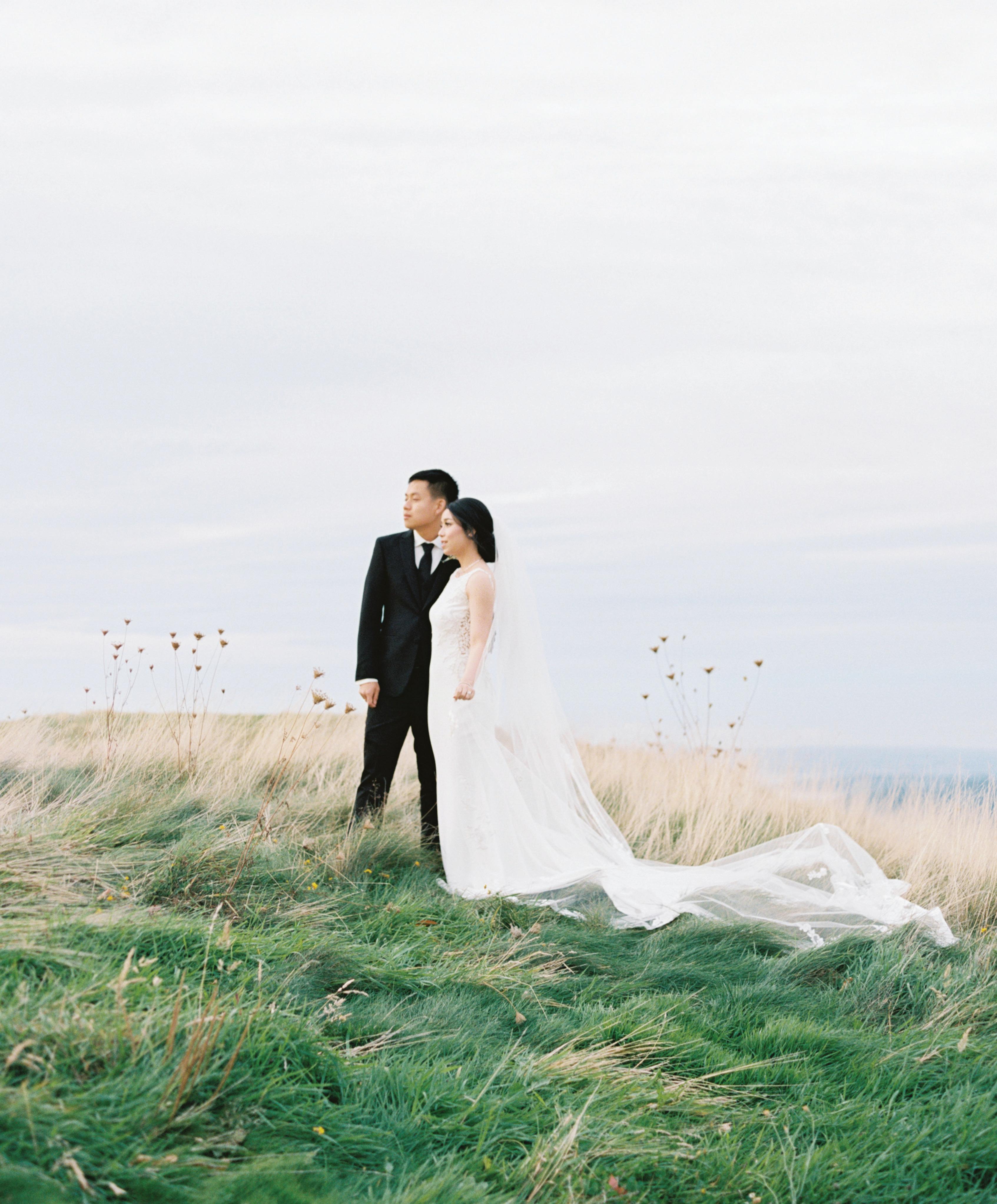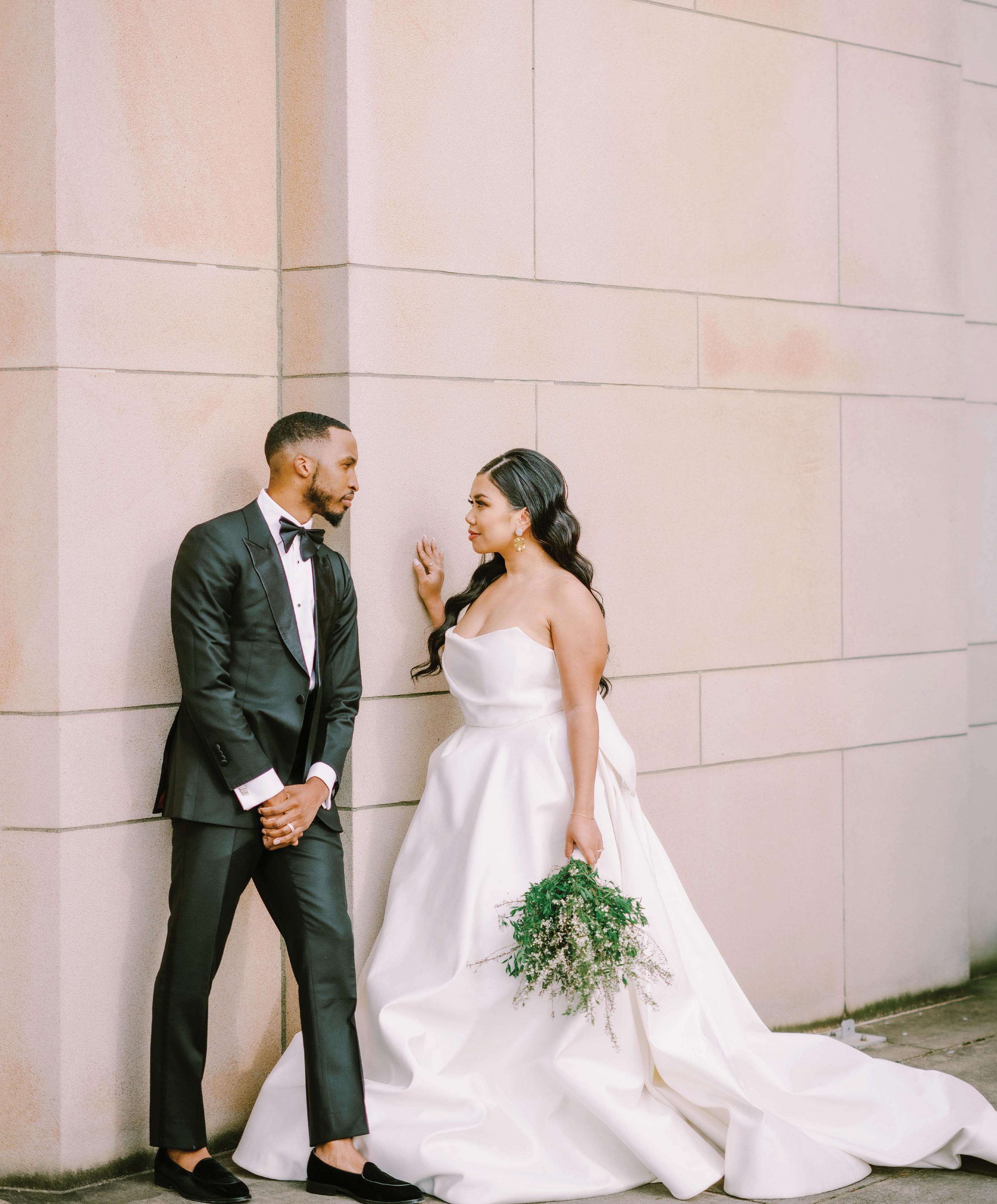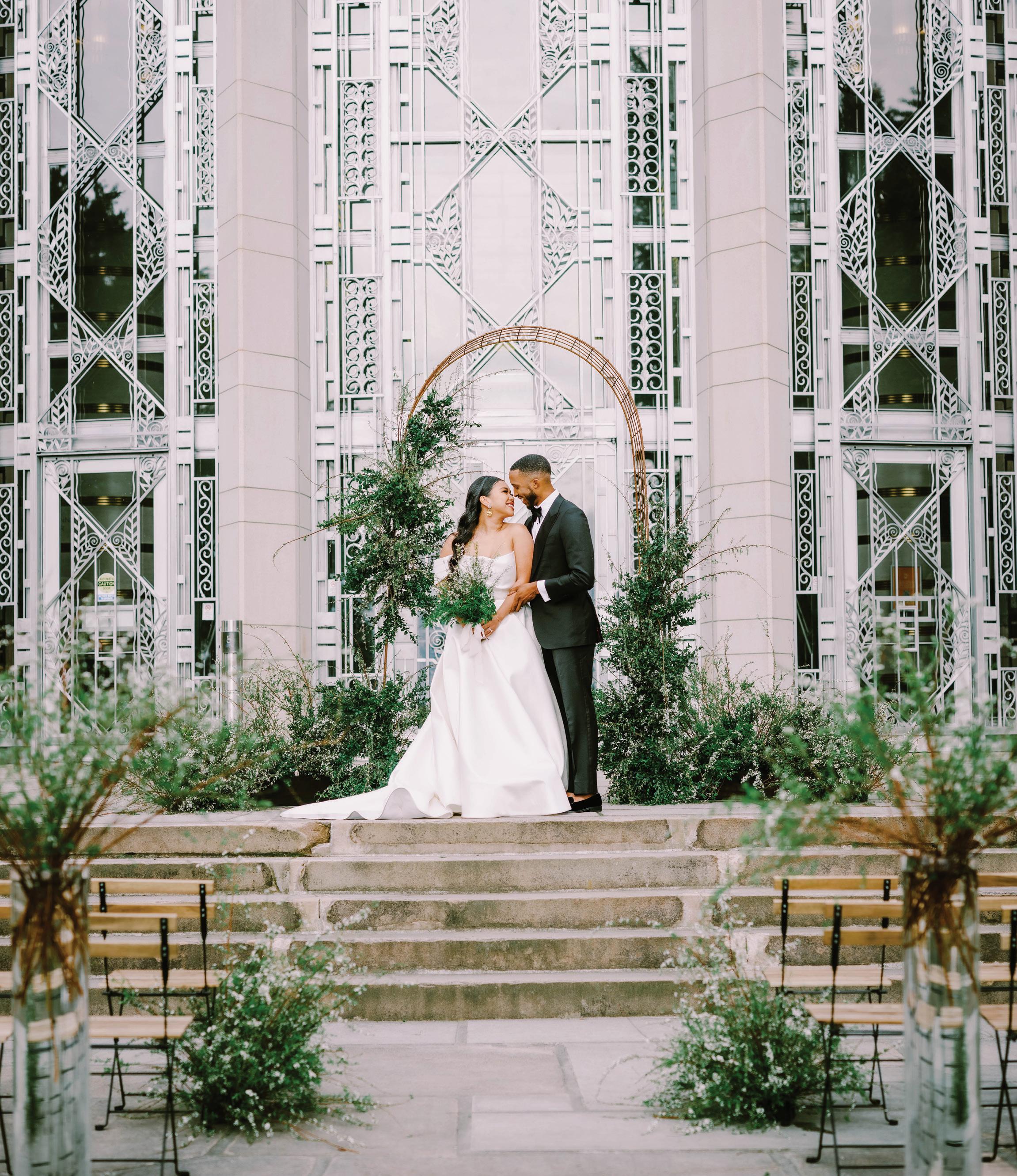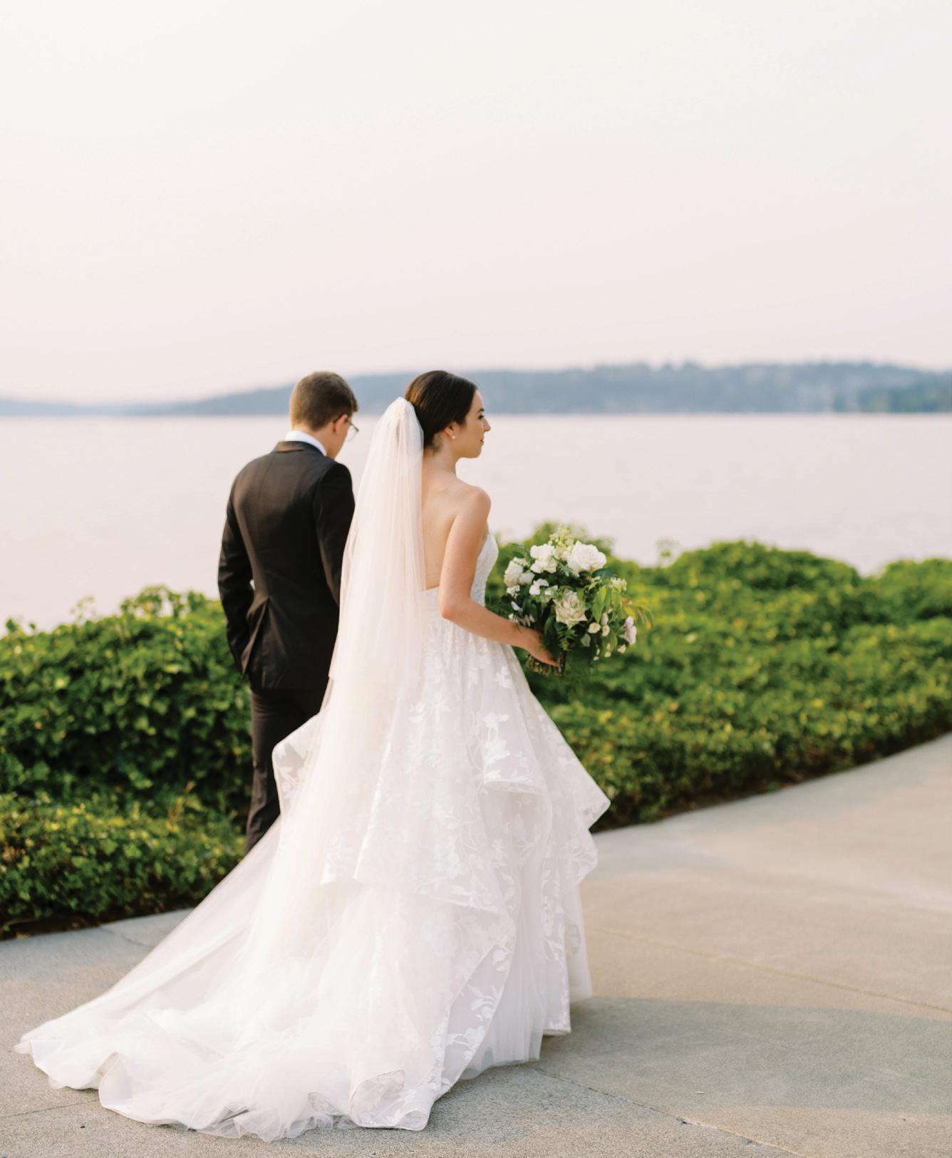 Bride Jess Wallace in “Cody” by Sarah Seven from The Dress Theory (@thedresstheoryseattle) at the Seattle Asian Art Museum. Bouquet and styling by Juliet and Lou (@julietandlou). Hair by Holly Tipp (@hollytippmakeup) and makeup by Gaylinyet (@gaylinyet). Photographed by Jenn Tai & Co. (@jenntai.co).
