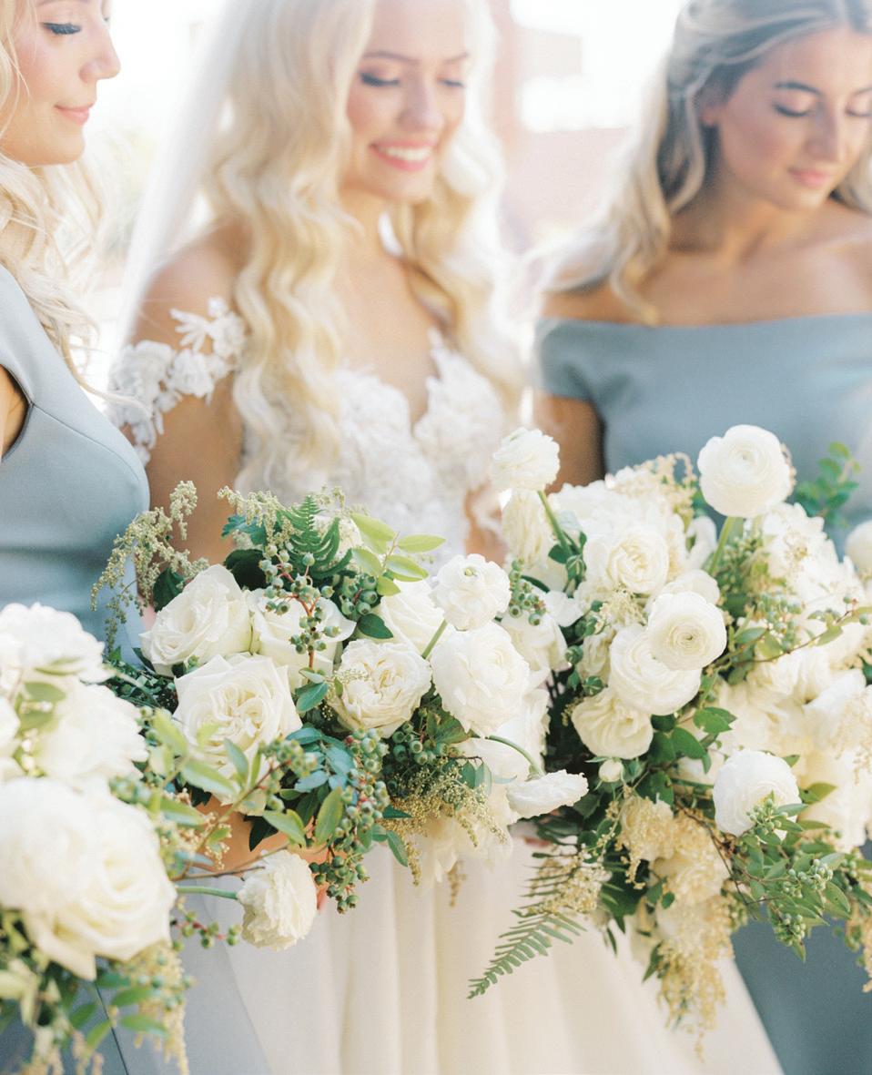 Beverages and Bartending: BEVMO! (@bevmo_co), BLUE RIBBON COOKING (@blueribboncooking) Bridal Attire: WEDDING SHOPPE (@weddingshoppeinc) Bridesmaids’ Attire: WEDDING SHOPPE (@weddingshoppeinc) Cake and Desserts: CAKE LIFE EVERYDAY (@cakelifeeveryday), HOT CAKES (@getyourhotcakes) Calligraphy: CRÉÉ AND CO (@creeandco) Catering: BLUE RIBBON COOKING (@blueribboncooking) Florals: FLORAL DESIGN BY MARIA (@floraldesignbymaria) Groom’s Attire and Accessories: THE TUXEDO CLUB (@thetuxedoclub) Groomsmen’s Attire: THE TUXEDO CLUB (@thetuxedoclub) Guest Book: ORIGINAL ART BY DIVINE PRINT STUDIO (on Etsy; @divineprintstudio_insta) Hair and Makeup: KARLA (makeup) AND LINDSEY (hair) OF BRIDAL BEAUTY AGENCY (@bridalbeautyagency), CAPELLI’S GENTLEMEN BARBERSHOP (day-of grooming for groom and groomsmen; @barbershopcapellis) Invitations, Programs and Signage: MINTED (@mintedweddings) Music/DJ: BROOKLYN DUO (@brooklynduo),