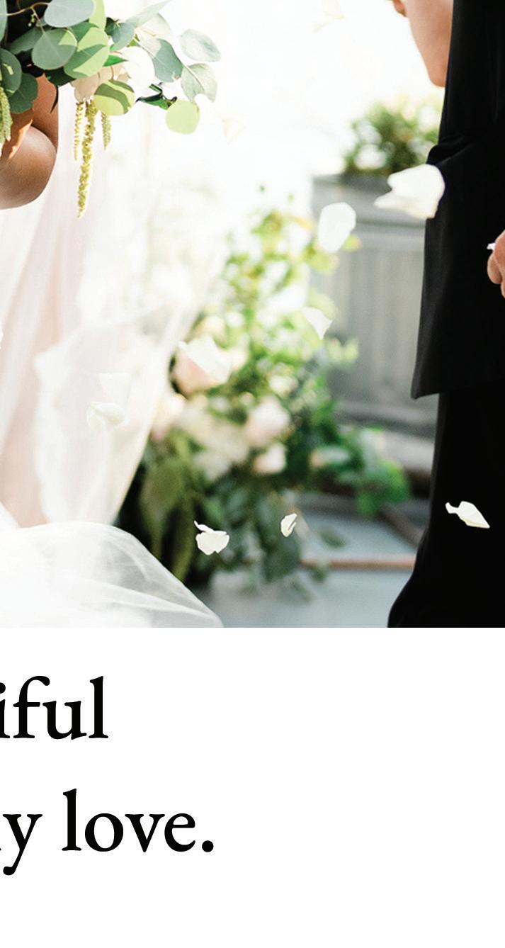In addition, this issue brims with inspiration and beauty, including fashionforward bridal gowns, cool barn venues and creative escort cards. Find the perfect bouquet, get caught up on the latest design trends and check out some of the coolest ideas for making your wedding day unique. And for a dose of pure romance, turn to our Newly Wed gallery for more ideas regarding details and décor.