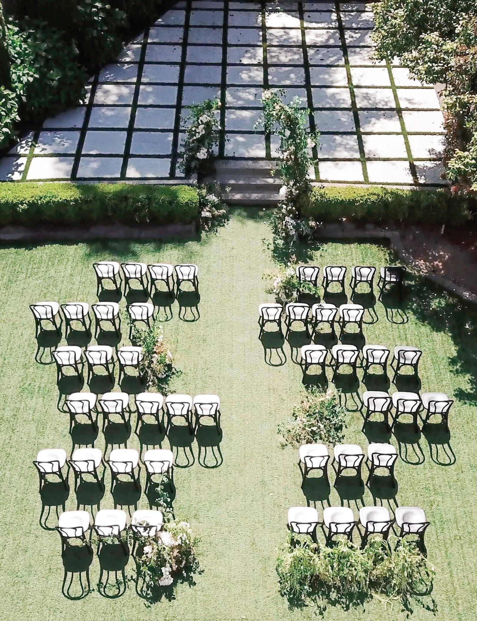The intimate ceremony and reception felt more like a cherished family dinner party than a formal affair. Focused on savoring the day slowly and intentionally, the couple began their morning together at the venue, enjoying quiet coffee time before separating to get ready—preserving a sense of calm while still building anticipation for the ceremony. The bride wore a structured pleated gown by Elie Saab and changed into a playful Ines Di Santo mini dress for the reception.