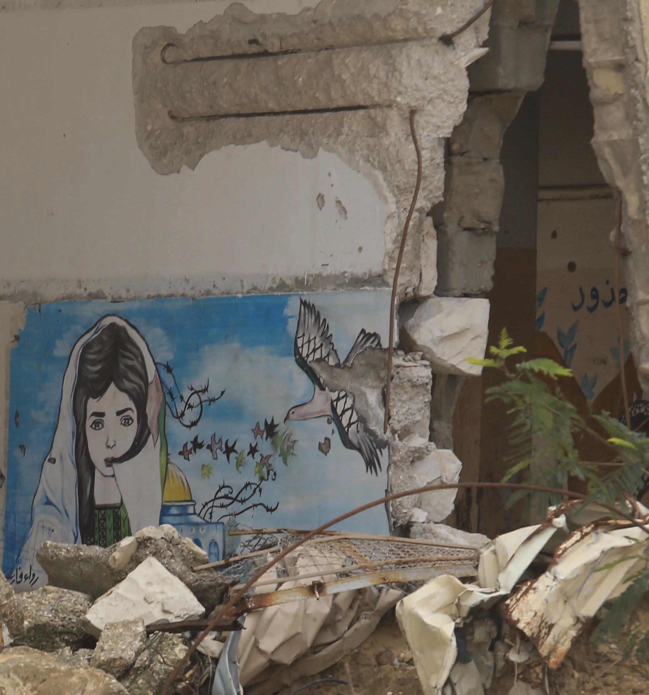 An orphan girl cries in an alley where a mosque once stood, hungry for her mother’s touch.