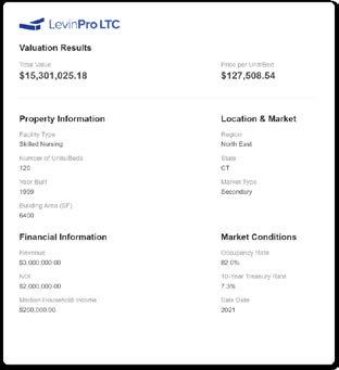 Get an estimated value of any type of seniors housing or skilled nursing property using LevinPro LTC’s newly launched property valuation tool. This tool is for anyone assessing an acquisition, advising on a sale or wanting to know where property valuations are today. An essential part of your workflow, the LTC Deal Valuation Tool adds another datapoint to your decision-making.