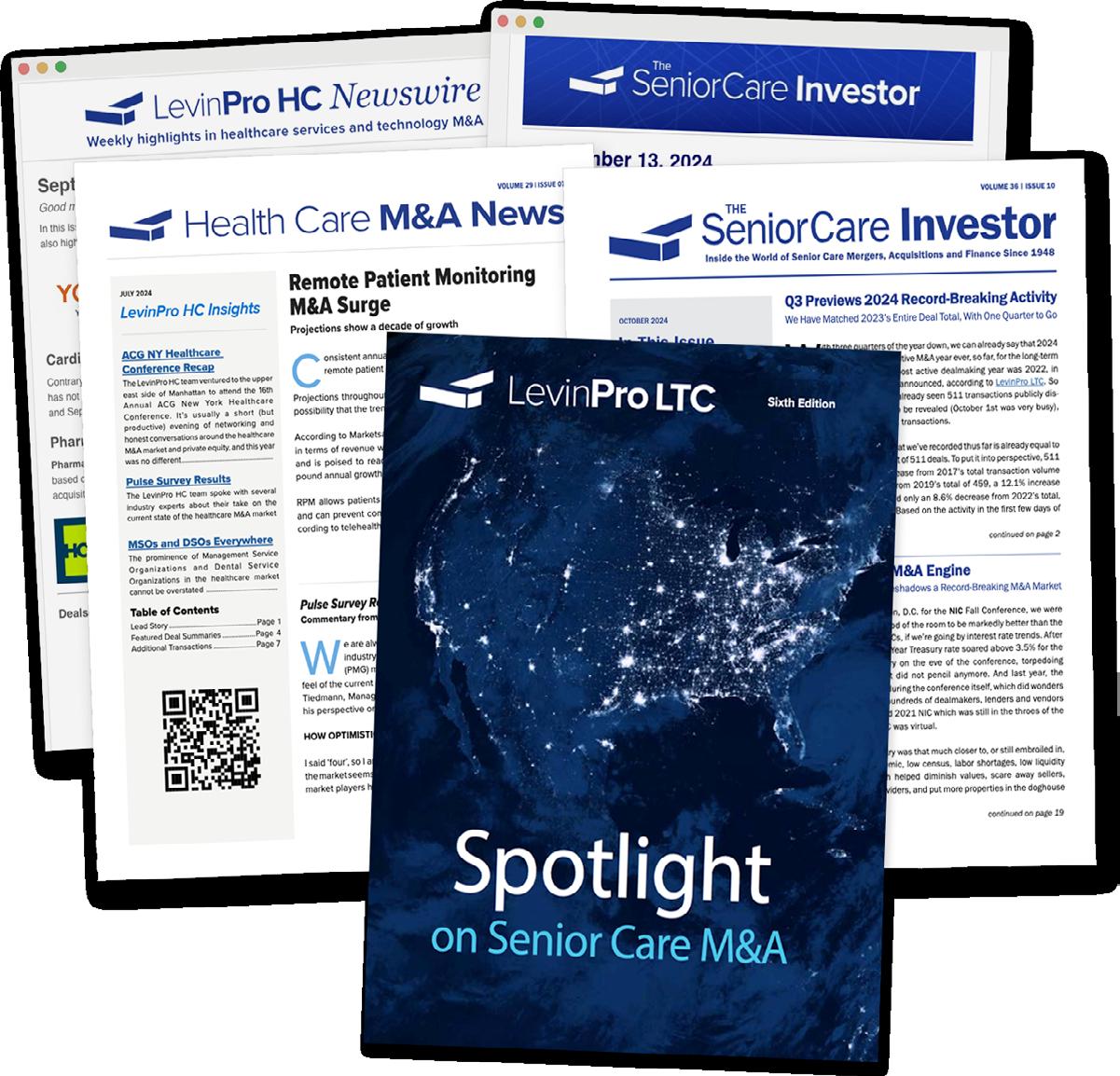 Let us help build your 2025 campaign. Secure your space today to reach key decisions-makers in the Seniors Housing & Care and Healthcare M&A industries.
