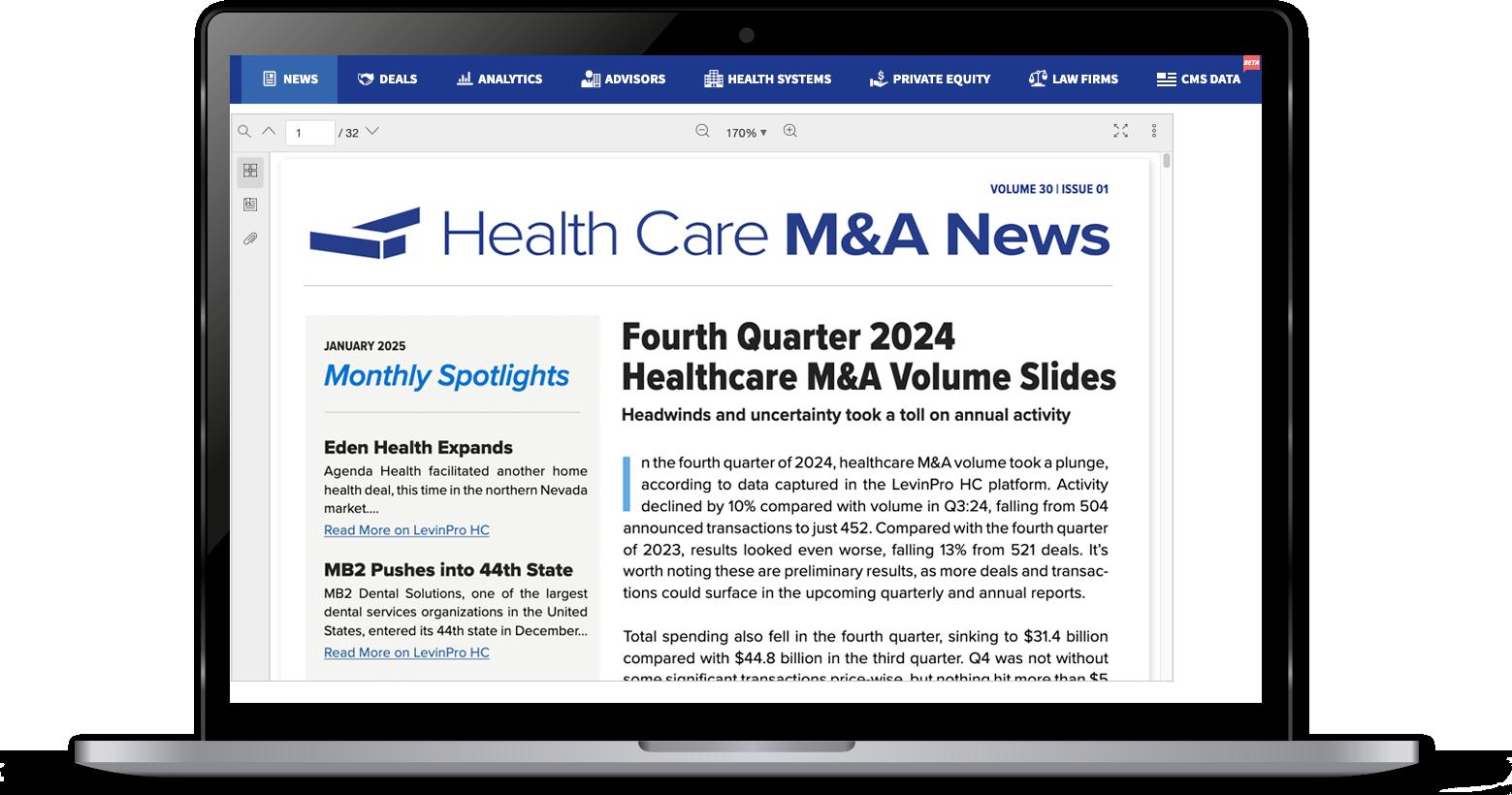 There was a huge deal announcement in Europe in late January. PureHealth, one of the largest health systems in the Middle East, purchased Hellenic Healthcare Group (HHG) for $2.3 billion. HHG, which was 90% owned by CVC Capital Partners, operates 10 hospitals totaling 1,600 beds and serves 1.4 million patients annually.