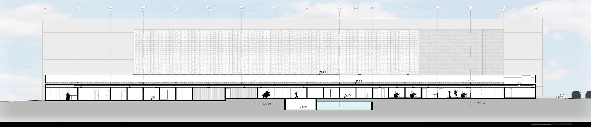 18,33% 97,14 m² Salas e Cozinha 33,32 m² Varanda 3,12 m² Lavabo 3,12 m² Lavanderia 12,39 m² Entrada 27,01 m² Garagem 28,28 m² Piscina 0,15 2,05 0,40 6,50 0,40 2,20 0,15 3,55 0,15 1,30 0,15 1,30 0,15 3,35 0,15 4,90 2,85 0,15 6,63 5,37 0,15 4,70 6,85 0,15 0,15 2,85 0,15 9,70 0,15 2,85 0,15 16,00 26,85 6,00 0,40 4,35 0,40 +0,00 -1,30 +0,00 19,35 m² Sala de estar 10,72 m² Quarto 2 4,32 m² 7,59 m² 0,15 +0,00 - 01. Térreo +3,00 - 02. Primeiro pavimento +6,00 - 03. Cobertura Escala 1 : 50 Elev.