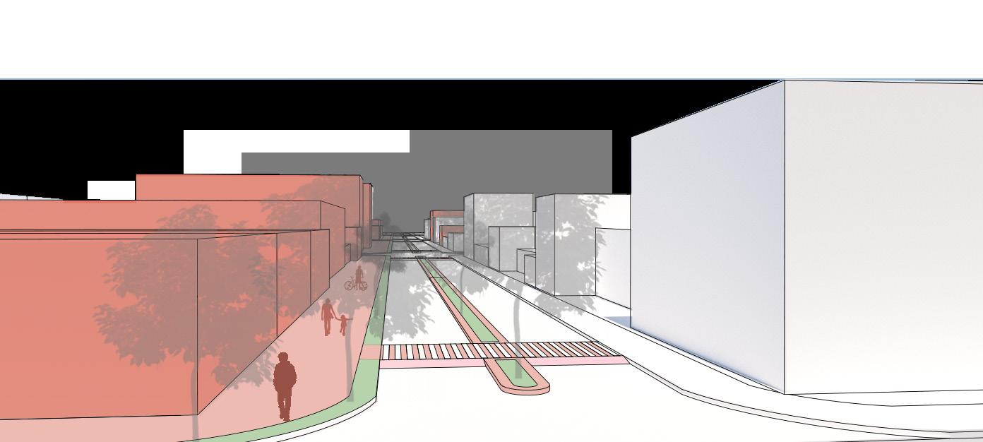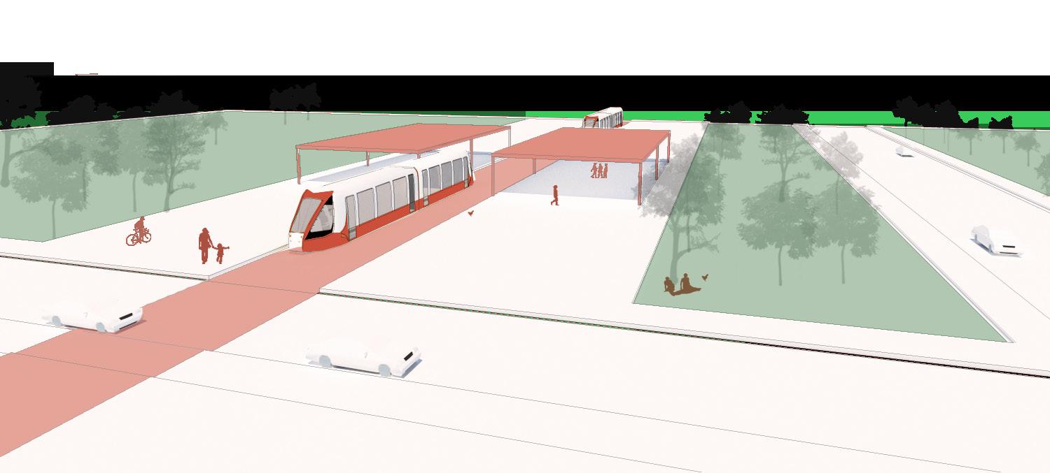 Além da proposta de novas estruturas viárias, dois modais de transporte foram escolhidos para melhor conexão dos espaços: um anel de BRT, que também pode se estender para os corredores me tropolitanos Itapevi – São Paulo e Alphaville Cajamar e um VLT que costura toda a área. Ambos minimi zam os impactos das barreiras, a carência de transporte público, trazem uma importância para o Eixo Oeste dentro da RMSP e se relacionam com outros modais de transportes existentes.
