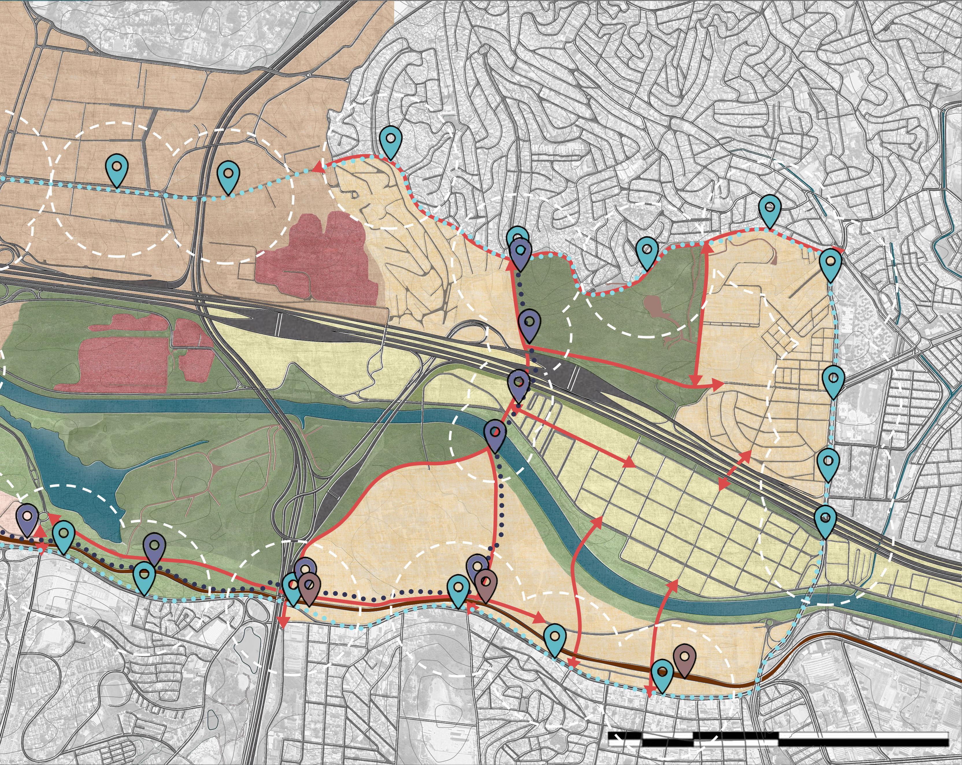 Desta forma, o projeto busca novas realidades para ambientes de pertencimento, com estudos voltados desde a escala macro metropolitana até intervenções pontuais estratégicas do plano, com maior potencial de transformação e adequação do espaço ao contexto em que está inserido, além de suas relações sociais e econômicas com a cidade e a população resi dente.
