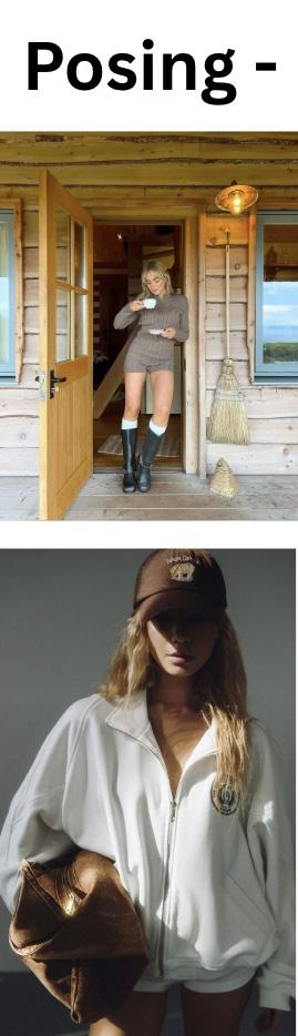 I also gathered posing inspiration for both indoor and outdoor shots. The poses fit well with the brand theme while also reflecting the cosy aesthetic. I tried to find poses that are suitable for the model to be doing in the collection items. I know from previous projects that having posing inspo for each look is really helpful and makes the shoot run smoother and so that the model has an understanding of the looks and shots we are trying to acheive.