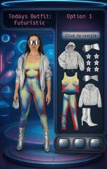 I wanted the background to include more futuristic elements, similar to the ones in my retro-futurism croquis. To achieve this, I used ChatGPT by providing the last version of my digital wardrobe image along with the croquis. I asked it to incorporate more of the objects from the croquis into the background, helping the final image align more closely with my original vision. I do like the image it produced however I do prefer the other copies that it gave me as they look more clear that it is a digital wardrobe.