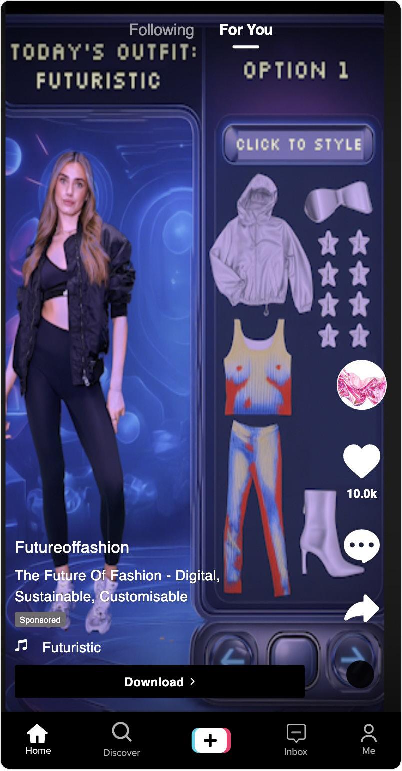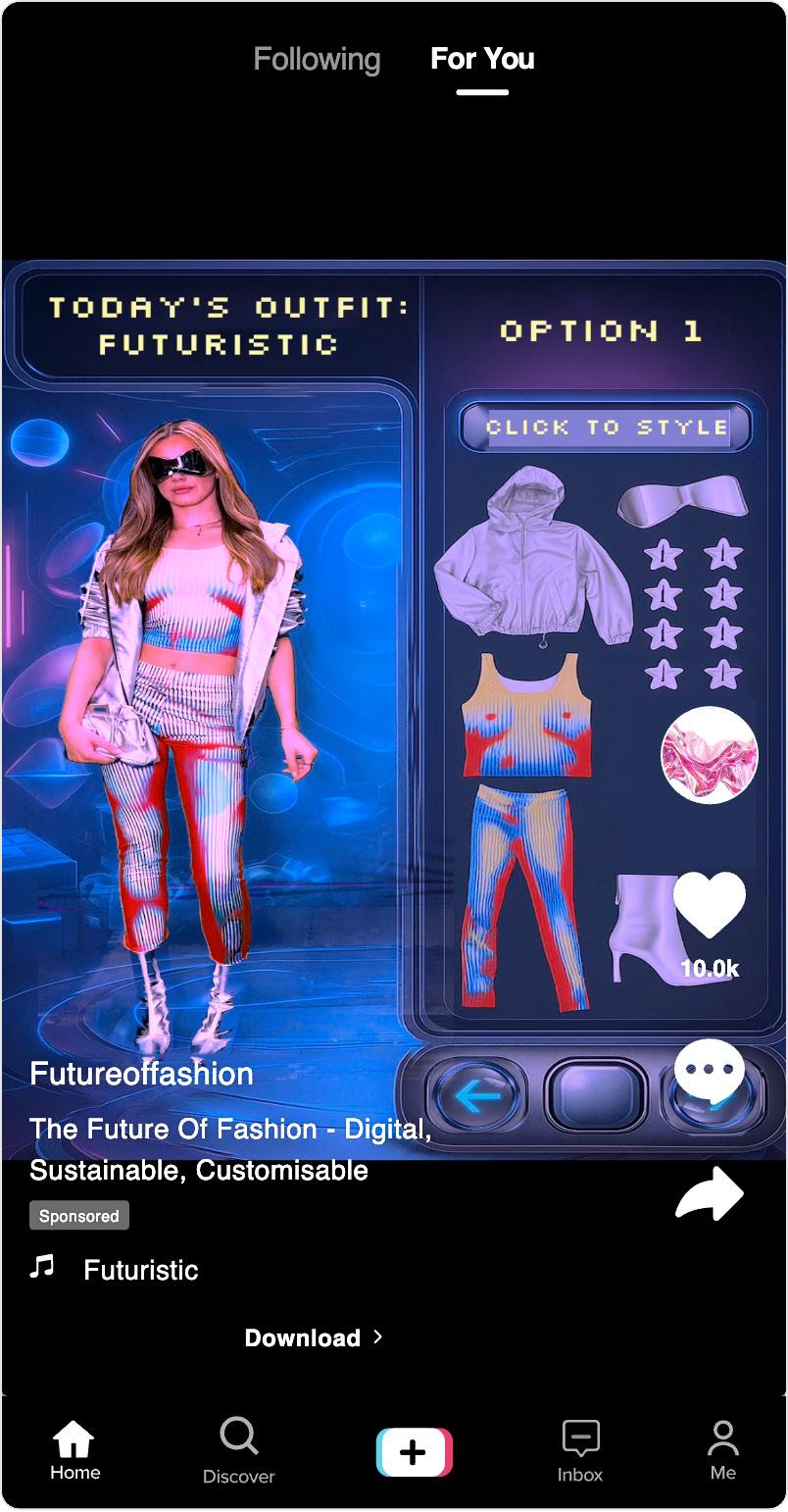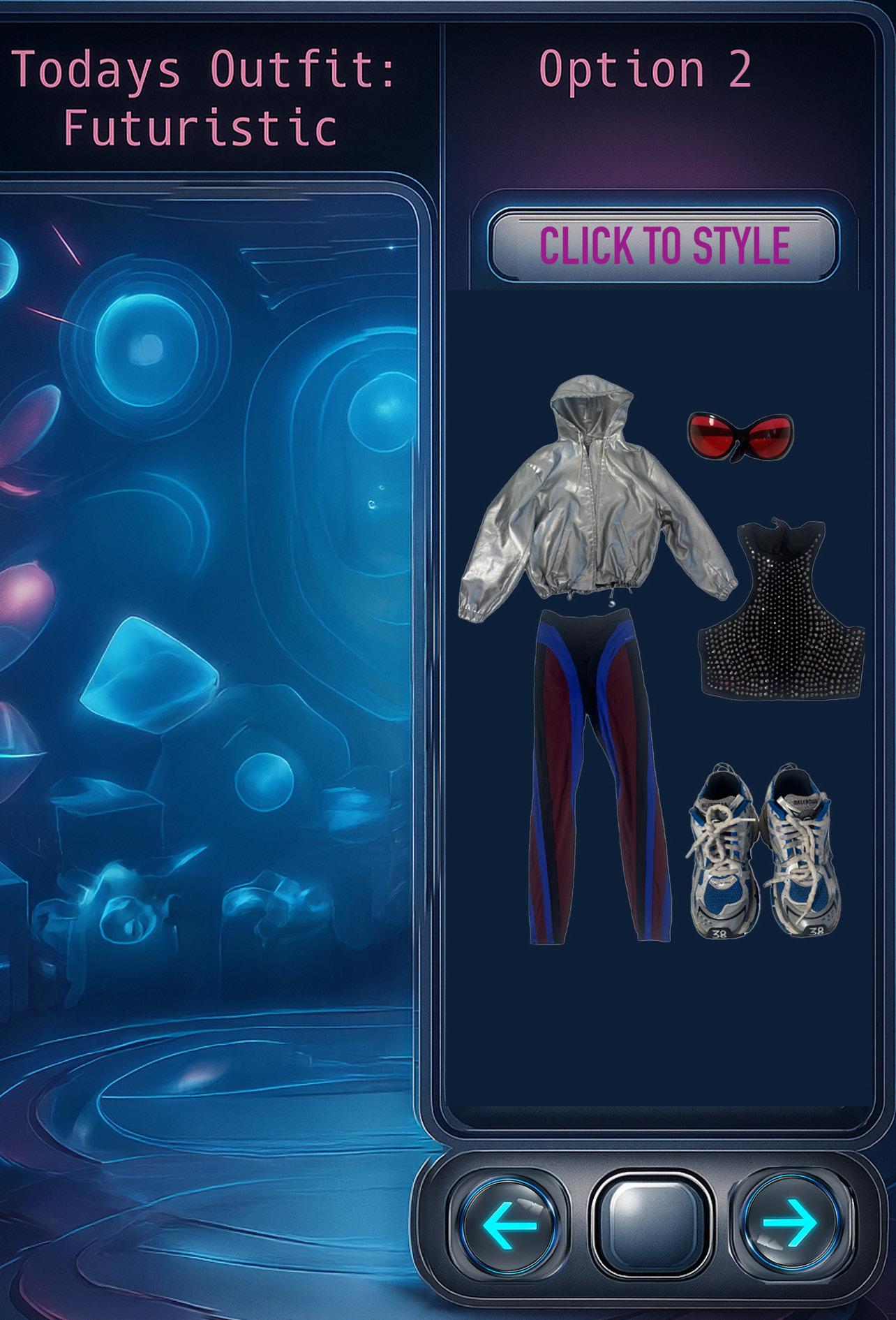 My next steps are to make the video look more futuristic and more like a digital wardrobe. I will aslo be elevating the styling to make it more futuristic. Inspo for development
