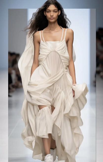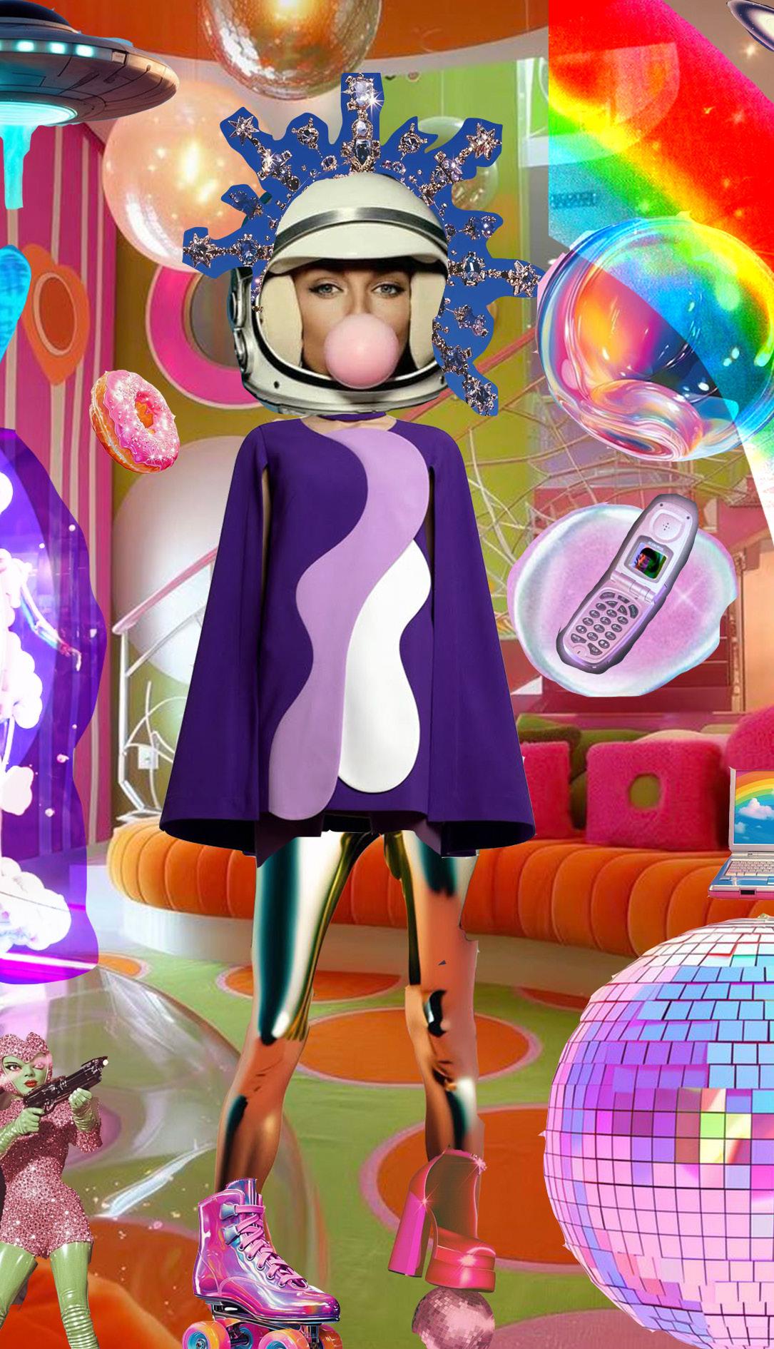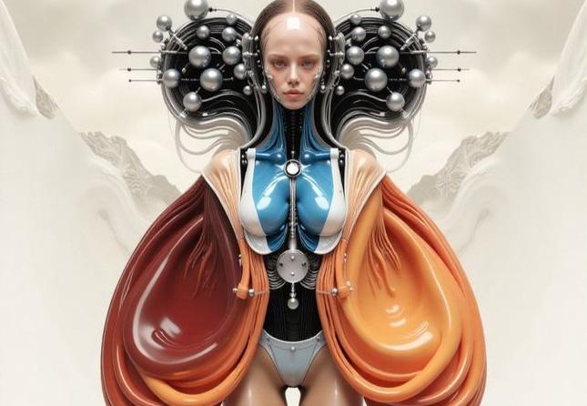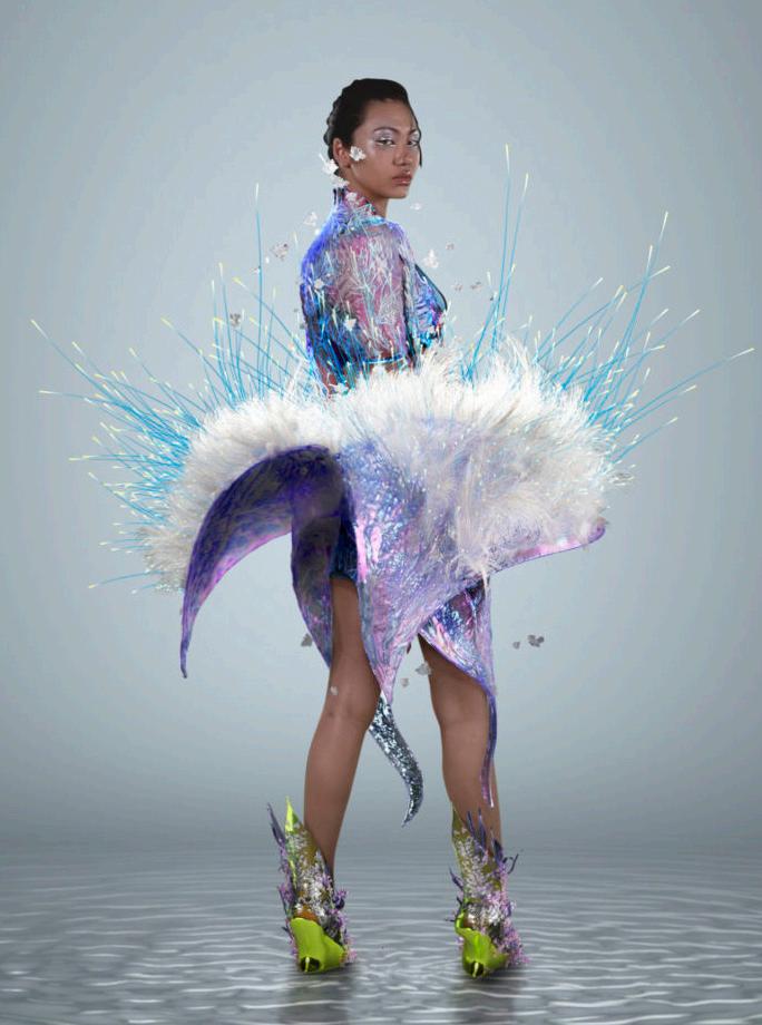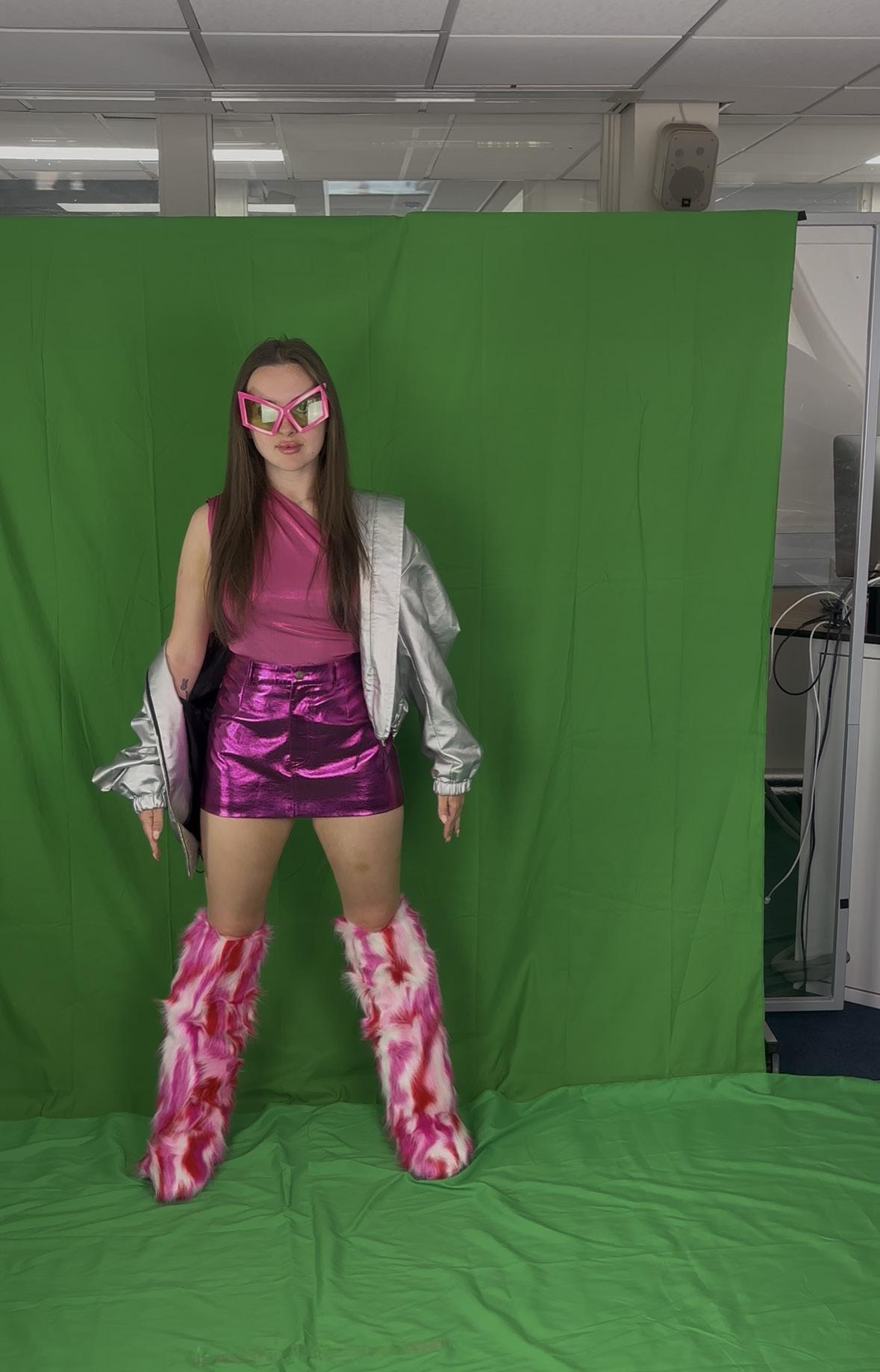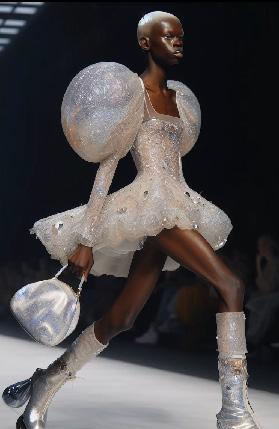 I uploaded my croquis, from my research on futuristic fashion, onto Chat GPT. I asked it to incorporate more of the objects from the croquis into the background, helping the final image align more closely with my original vision.