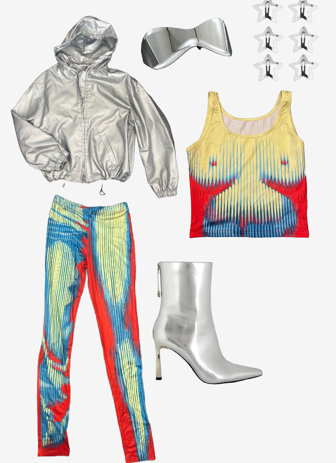 For each look I will be styling the silver jacket in a different way. For example: