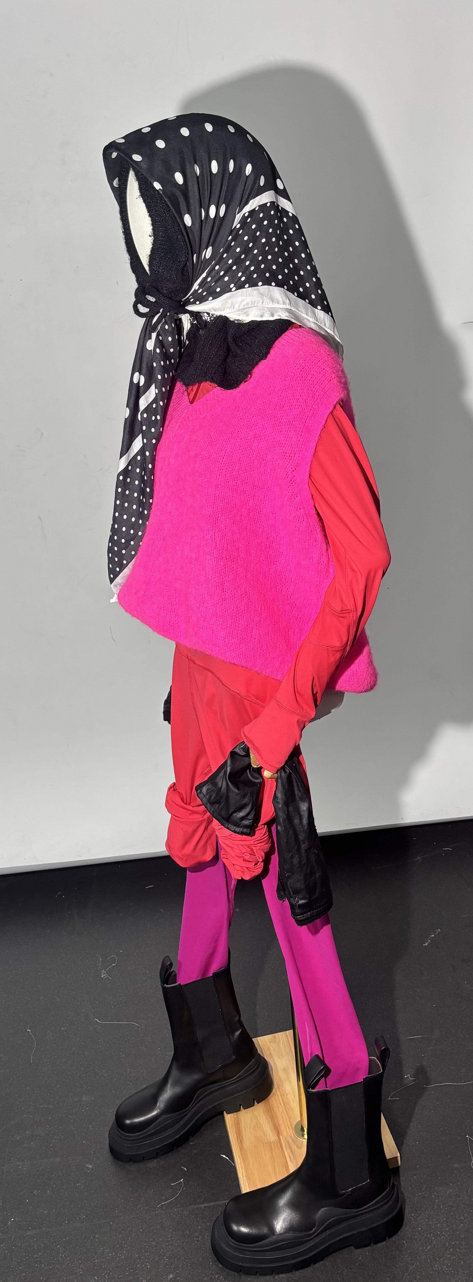 I used a range of accessories within my styling to enhance the overall looks and bring my concept to life. These elements help to build on ideas of individuality, protection and self-expression. For example, pieces like gloves, scarves and bold footwear add both meaning and visual interest, making the outfits feel more expressive and less trend-led. Reflecting on this, the accessories play a key role in elevating the styling and helping it feel more unique and intentional. They allow me to experiment with layering, colour and silhouette, while also reinforcing the balance between glamour and street influences within my collaboration. For my final looks, I plan to use these accessories in a more refined and considered way, selecting pieces that best communicate my concept without overwhelming the outfit.