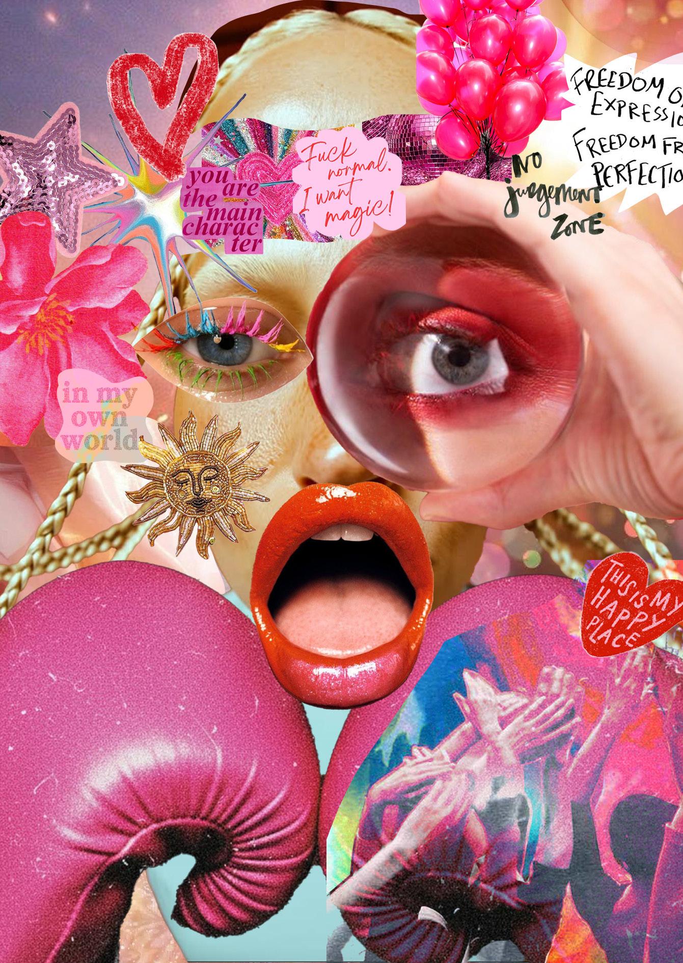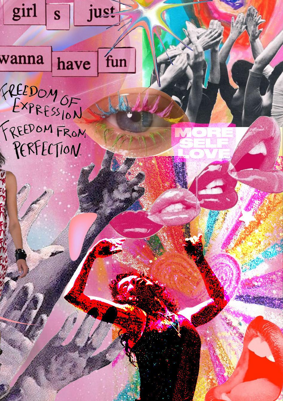The audience for my campaign is Gen Z women who want to express themselves freely, without fear of judgment. It is also aimed at them as they move into the next stage of their lives over the next five years. They seek a world where they feel safe, supported and know that their mental health is valued. This audience represents a community that comes together to uplift one another, a space where girls can exist in a perfect world free from political and social pressures. It reflects not only who they are now, but who they are becoming with freedom, authenticity and connection at the center of their future.