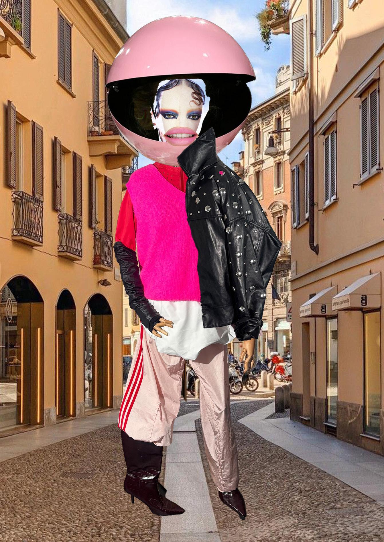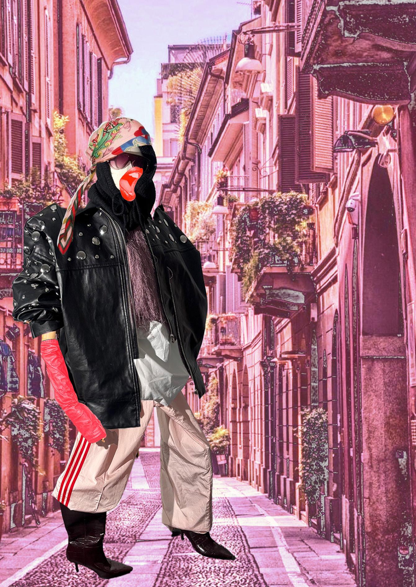 In my croquis’ I experimented with a range of backgrounds, scale and cut-out elements to explore different visual compositions. I incorporated backgrounds inspired by potential shoot locations to help visualise the final outcome. Additionally, I included cut-outs of accessories to symbolise protection, adding a deeper conceptual layer to the styling. Creating the croquis did helped me visualise how the outfits could look in the final shoot setting and how they will align with my utopian concept. However, I feel that they don’t fully capture movement, fabric texture or how the garments will sit on a real model. Some elements that worked well on the croquis may need further testing in real life on my model. Moving forward, I am going to try the looks on my model and experiment with more dynamic poses, then combine croquis with test shots of the model to get a more accurate outcome.