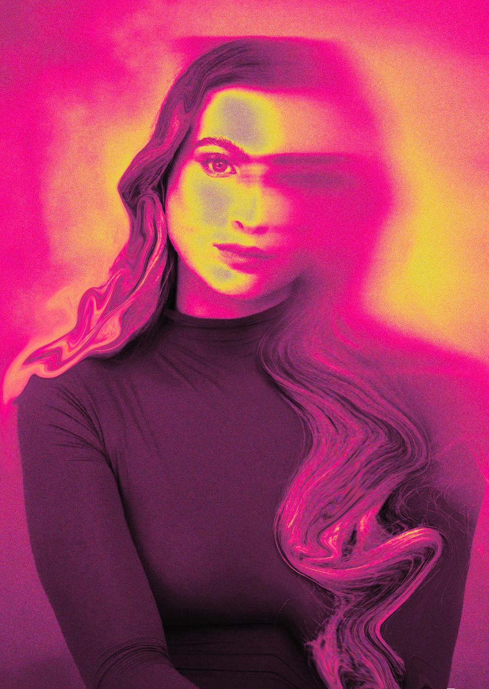 When beginning my post-production process, I used techniques and effects I used in my initial test edits, allowing me to build consistency while further developing my visual style. I experimented with colour grading and effects in Photoshop to enhance the utopian aesthetic, particularly using pink tones to reinforce my research into the connection to femininity and strength. I also explored using the collaboration branding into selected images, presenting them as editorial-style magazine covers to elevate the overall outcome and align with my luxury market level. While I am very happy with how the edits are progressing and feel they communicate my concept clearly, I am still going to be developing my post-production and using the effects on different images from the shoot so I can get the final image that I want.