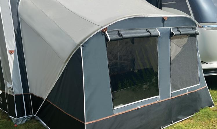 Per garantire un buon afflusso di luce naturale e per far sì che la tenda sia un luogo leggero e accogliente in cui trascorrere il tempo, Ambassador è dotata di ampie finestre panoramiche pannellate nella parte anteriore. Disponibile con tutte le opzioni di telaio.