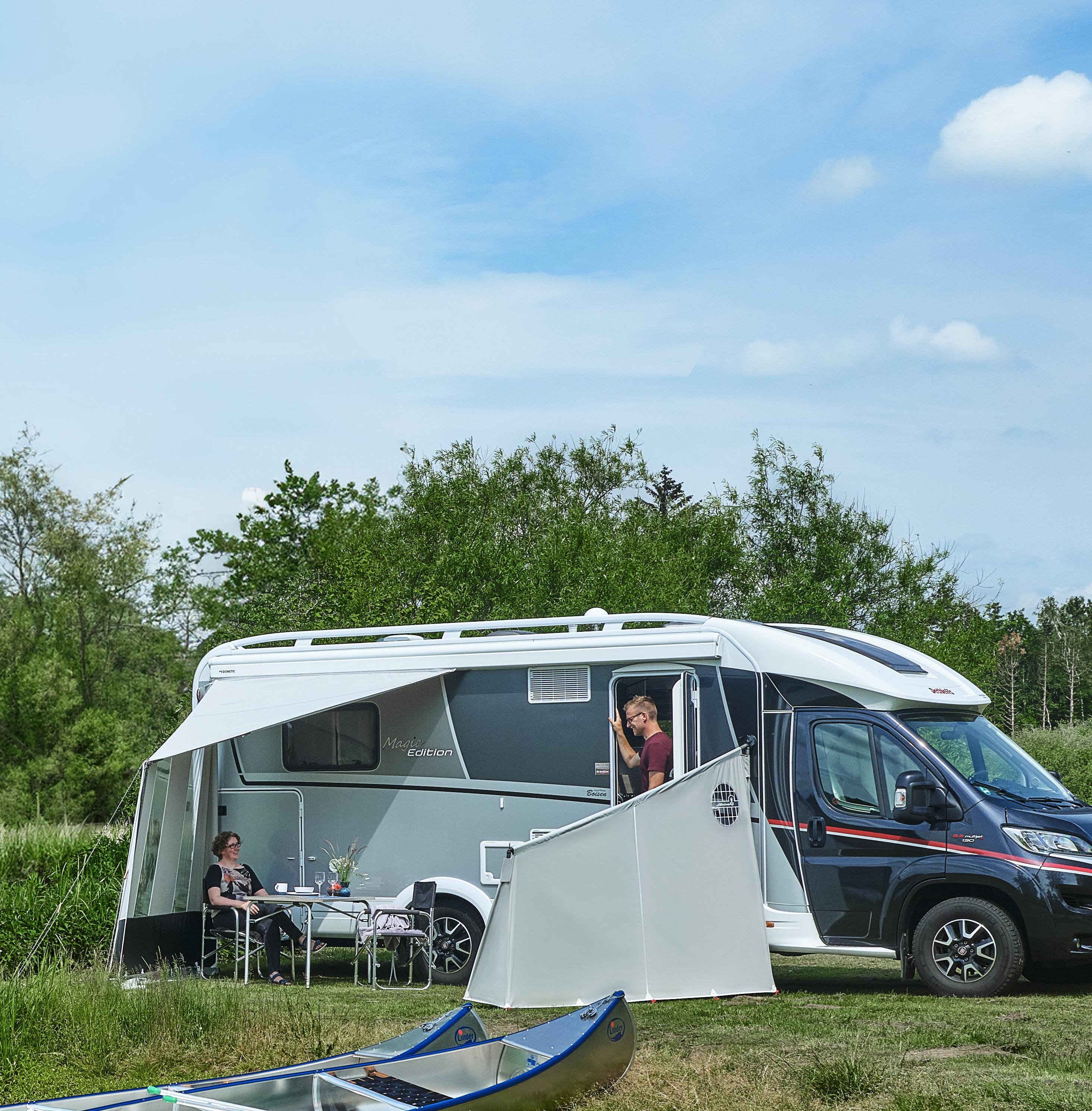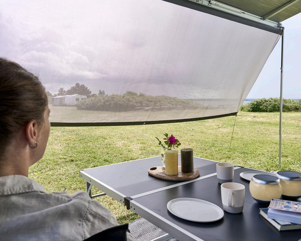 Creëer een gezellige buitenruimte voor je Caravan, camper of kampeerauto met de Wind Side, die eenvoudig aan je cassetteluifel kan worden bevestigd voor extra beschutting en comfort.