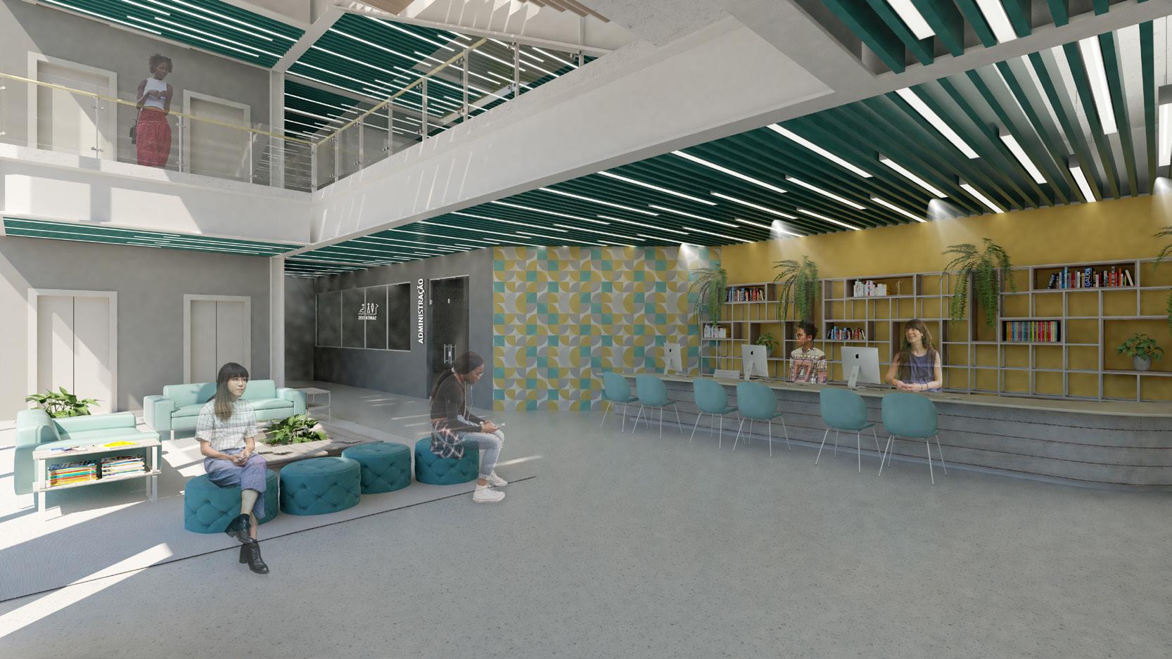 A edificação contará com estrutura em concreto armado e fechamentos em alvenaria estrutural, cobertura em estrutura metálica com telhas termoacústicas e fachada com elementos metálicos e vidro, garantindo um design contemporâneo e funcional. O projeto também contempla medidas de acessibilidade conforme a ABNT NBR 9050, incluindo rampas de acesso e sanitários adaptados, assegurando a inclusão de pessoas com mobilidade reduzida.