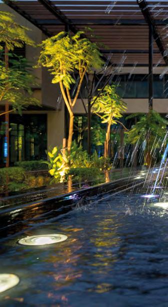 Variety, vivacity and sophistication can, if composed correctly, unleash just as much power as a big bang. For the newly built and spacious leisure, residential and business district of Al Liwan, we relied on many smaller elements to breathe life into the entire area and surprise passers-by again and again. A retractable splash deck system that turns into a pond, a walk-through water arc and illuminated small water features all contribute to a harmonious overall composition that lends the quarter an extraordinary character.