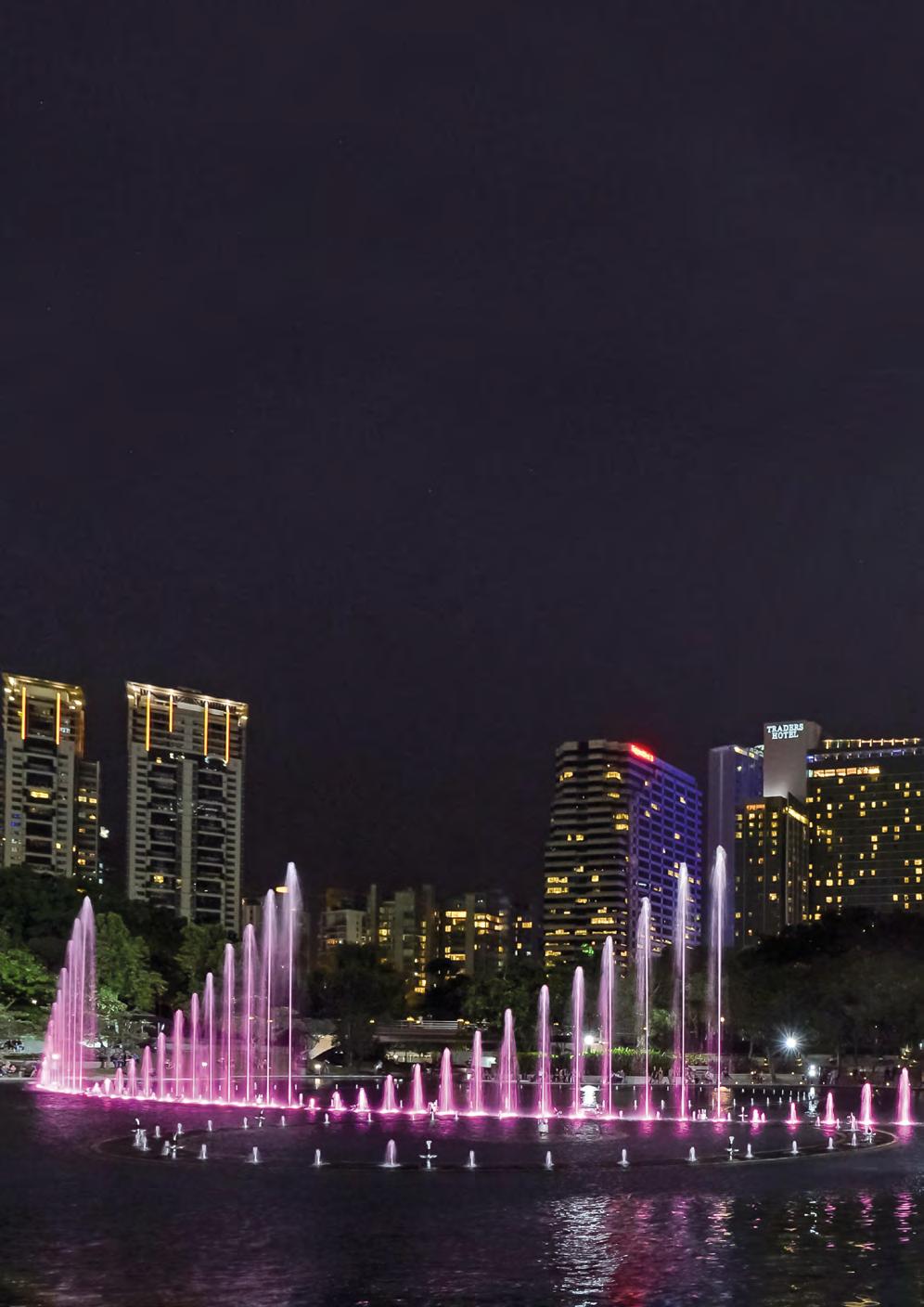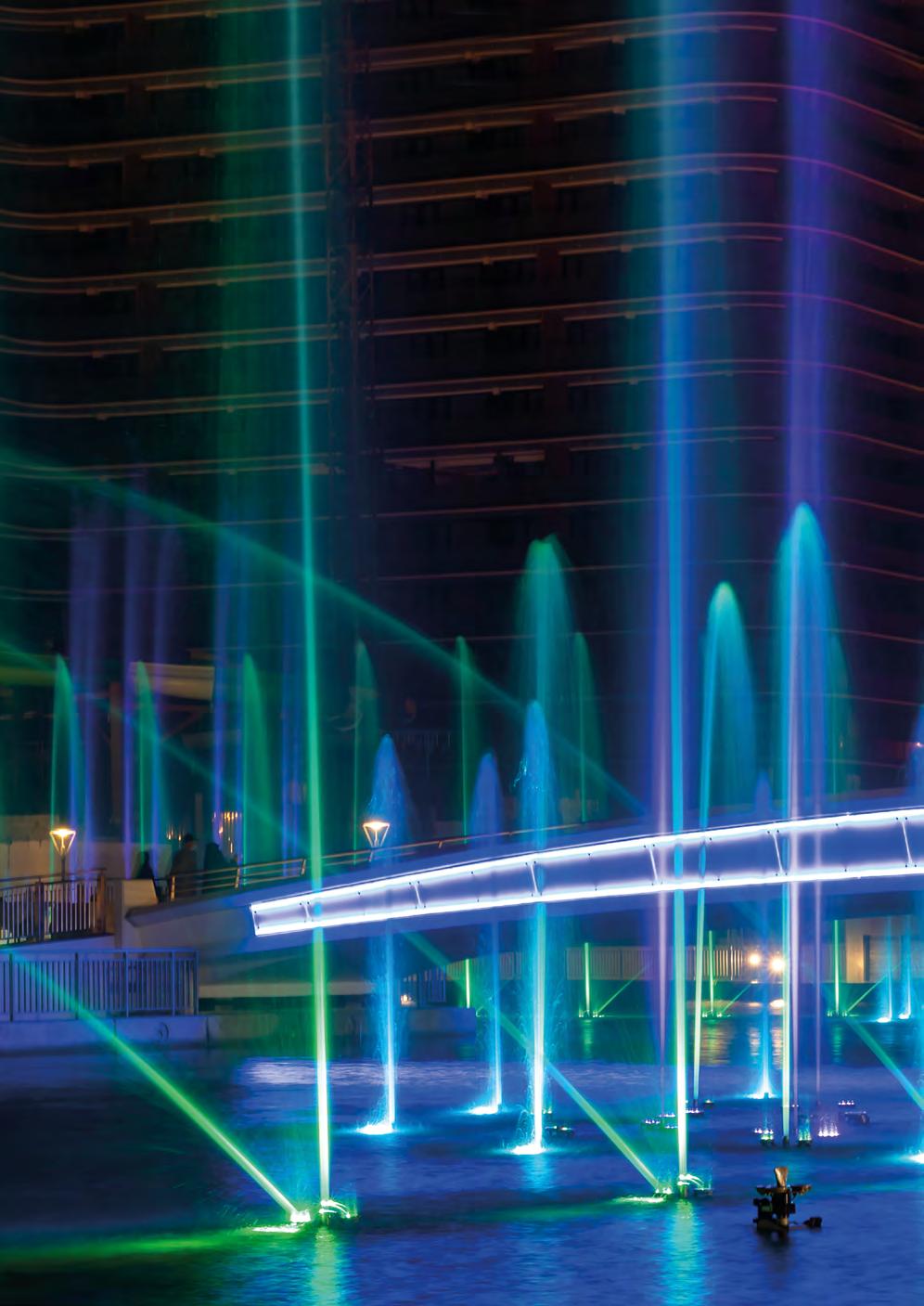 A show fountain is an attractive opportunity to distinguish global hubs from other world-renowned cities, offering up a new highlight to draw in international tourists. Breathtaking illuminated water choreographies to music, special effects or moving image projections on water curtains offer almost endless possibilities to excite viewers. Thanks to state-of-theart digital control, new shows can be created again and again, thus encouraging repeat visits.