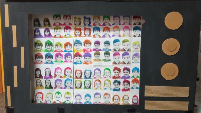 R: Estamos trabajando los medios de comunicación, además también estamos trabajando diferentes artistas y fusionamos ambos contenidos, por ejemplo: hicieron unos cuadros al estilo del artista Andy Warhol y el resultado lo colocamos en una televisión gigante en el hall de la entrada
