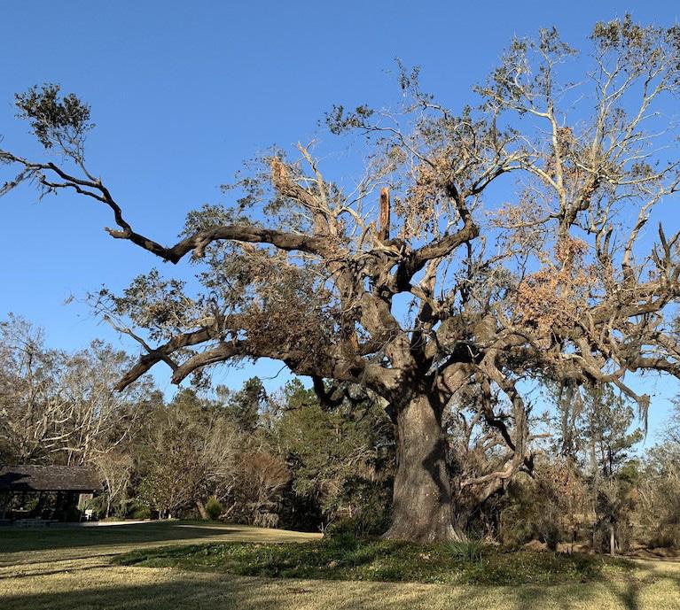Loftus Tree Care was able to save this 84-inch-diameter live oak in Pass Christian, MS. Their work began in November 2020 after Hurricane Zeta knocked out 95% of the tree’s foliage and cracked or broke every branch. This tree needed help from Loftus in three areas to successfully recover: