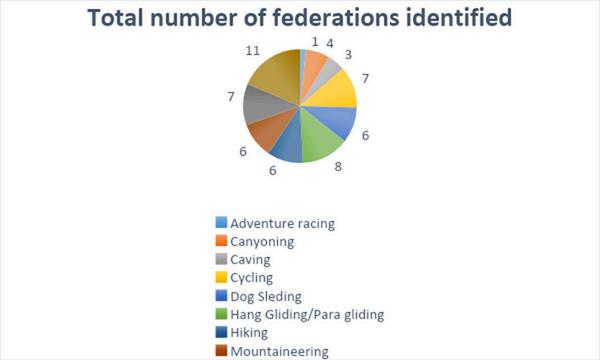 From the 10 partner organisations, 59 federations were identified for the 10 activities. These are shown in the chart below.