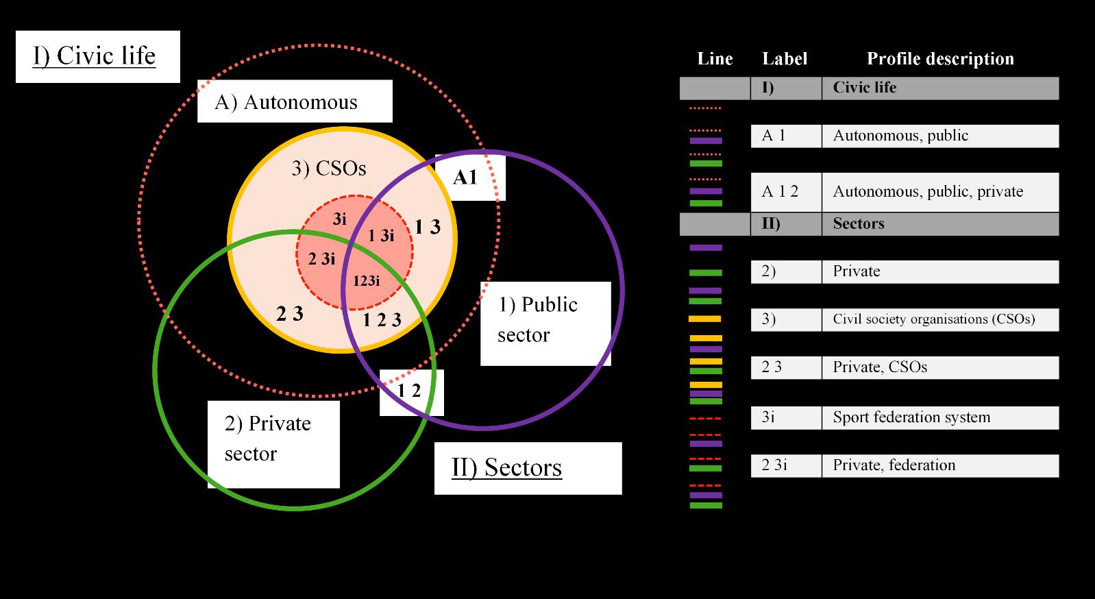 Chapter 3: A map of the relationships between civic life and sectoral contributions better captures the diversity of the organisation of and participation in sporting activity.