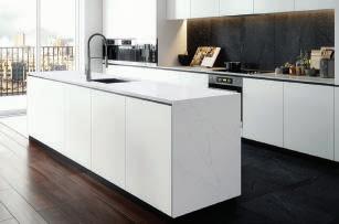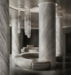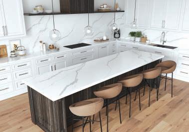 HIMACS Solid Surface’s Calacatta Collection features Calacatta Crystal, a design with an ethereal allure. Short and long white veins blend flawlessly while moving across a translucent base, creating a delicate look of natural stone with a mystical‑like ambiance. This versatile collection suits interiors seeking refinement and elegance and offers exceptional maintenance, cost and hygienic advantages. Learn more at www.lxhausysusa.com/hi-macs