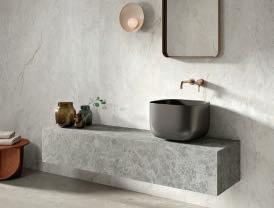 Porcelanosa’s KRION Solid Surface is mainly used to create kitchen and bathroom fixtures and features in exceptional interior and architectural projects — from creatively shaped façades to intricate cut‑out designs. KRION Solid Surface offers a low‑maintenance antibacterial surface, a range of more than 100 colors, textures and lighting options, and the ability to be molded or shaped for any form. The material is warm to the touch, similar to natural stone, and is made of two‑thirds alumina trihydrate with a low percentage of highly resistant resins. It is ecological, 100% recyclable, and can be reprocessed and reused. The Opale series includes two pearly shades: Opale Bianco (shown) and Opale Grigio. See all the designs at www.krion.com.