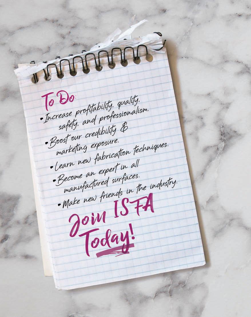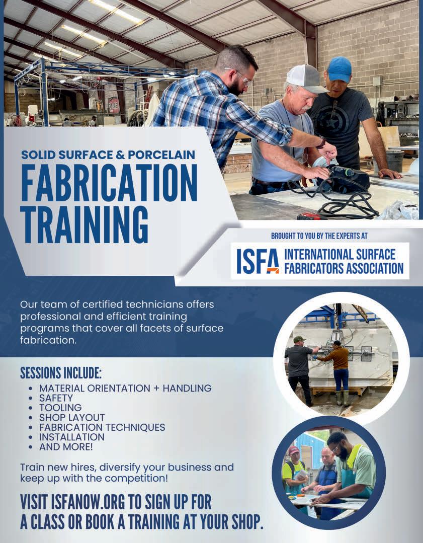 Whether you’re exploring new materials, evaluating equipment options, or seeking partners who share your commitment to excellence, we hope this guide serves as a reliable companion in your work. The ISFA team is proud to support the surface fabrication community, and we look forward to helping you continue to build, create and innovate in the year ahead.