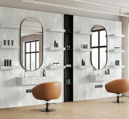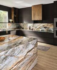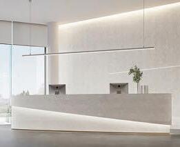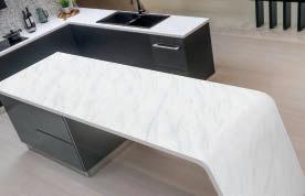 Staron’s line of solid surface includes a spectrum of over 100 colors and patterns. Shown here is Latte Cream from the Supreme Collection. Staron facilitates fabrication, including thermoformed curves, for intricate shapes and seamless integration into various structures such as walls, columns and displays. It excels in environments where natural stone falls short, including health care and food service settings, and is known for captivating Tempest colors and authentic patterns featured in the Supreme Collection. Staron boasts meticulously glued and buffed seams, ensuring a flawless finish. Staron has partnered with Material Bank to enhance accessibility and simplify the material-sourcing process for designers, architects and other professionals. To learn more about Staron Solid Surfaces, visit www.staron.com