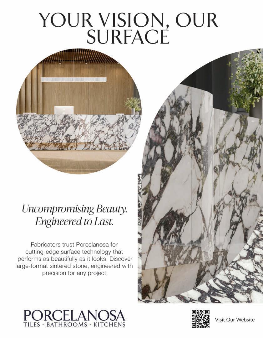 Photos in this publication may not depict proper safety procedures for creative purposes. lSFA and Countertops & Architectural Surfaces support the use of proper safety procedures in all cases and urge readers to take steps to institute such procedures.