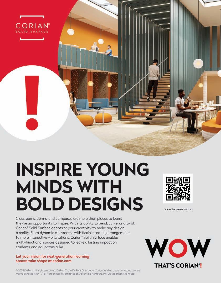With its ability to bend, curve and twist, Corian® Solid Surface adapts to your creativity to make any design a reality. From dynamic classrooms with flexible seating arrangements to more interactive workstations, Corian® Solid Surface enables multi-functional spaces designed to leave a lasting impact.