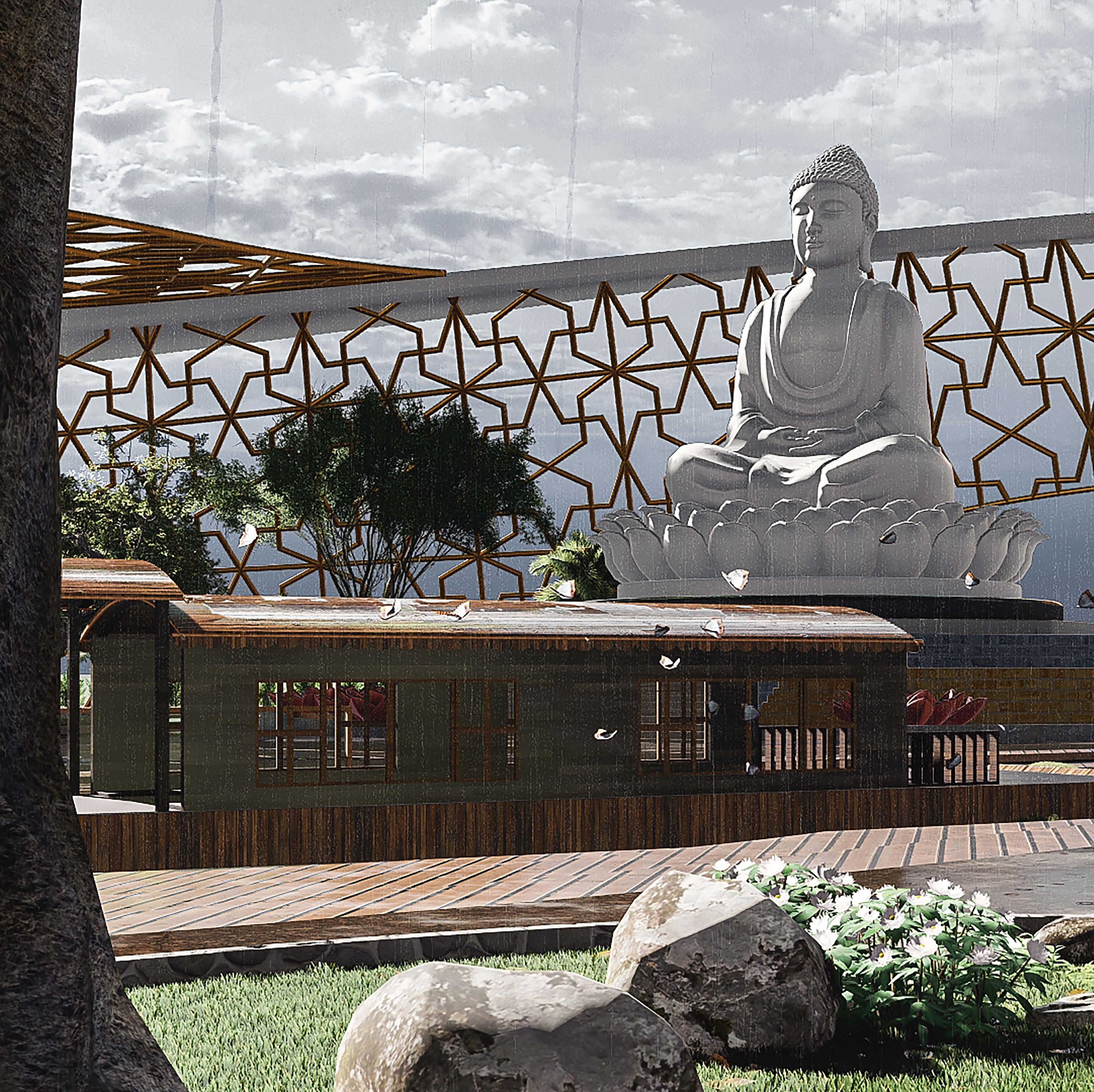 Sitting beyond the tributary of the Padma river is the Circle of Life. The retreat surrounds itself with the sounds of the waves as the ferry passes by. It brings on itself the aim to achieve a blissful state of mind by targeting all seven chakras of the body of the visitors. The openness of the curved spaces, derived from the glowing in the impure lotus, allows for interaction not just with nature but the unknown lives of hundreds surrounding them. As the sun rises and glows upon the crops growing beyond the retreat center, a fresh new morning awaits every day. The Circle of Life takes this fresh energy to the 8 Spaces created following the Buddhist Eightfold Path and invites you to hold a pose in the Yoga Centre, pick some crops in the agricultural fields, sip a coffee in the café, take a ferry ride down the river, calm yourself under the trees of the meditation center, cleanse yourself in a spa or learn the Buddhist philosophies in the Book Reading Center. Right from the entrance to the views from the river, the focus instantly diverts to the 2 Buddhas facing each other. The now versus then. The modern versus ancient. The dark versus bright. The dark Buddha with a broken hand, surrounded by Buddhist prayer bells, sits and proves how an 11th Century piece of art can make a pilgrimage site, and the Circle of Life rejuvenates the Statue and brings back its lost importance. The circular form of the building emphasizes the all-inclusive Buddhist philosophies that unite all in the circle of life, signifying its ever-changing and progressing nature.