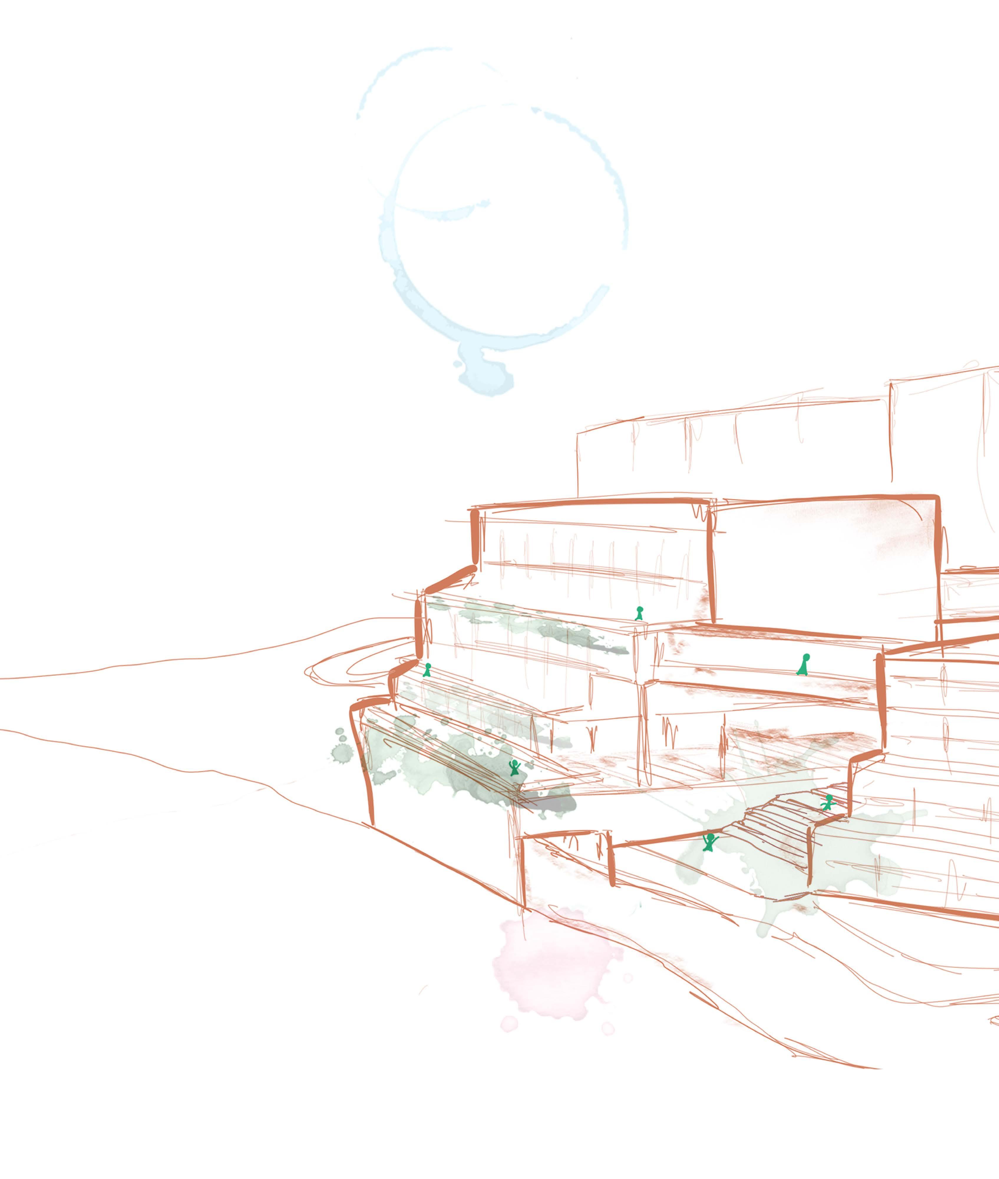 Using the seismic resistance step back form for terraces to retain the green nature of this patch of land