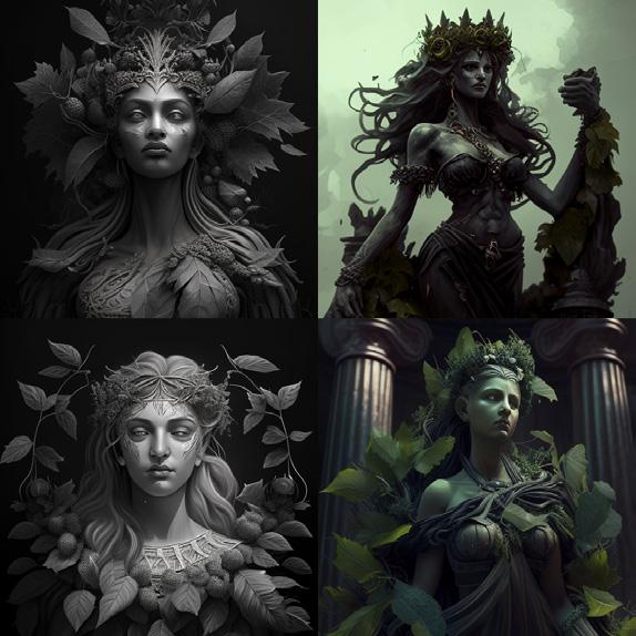 Figure 15. Images generated from Midjourney "high detail, Greek, goddess of the underworld, Crops start to grow"