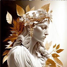 • Persephone, Symmetrical composition, half the queen of the underworld use gold and black , and half Greek goddess use gold and white