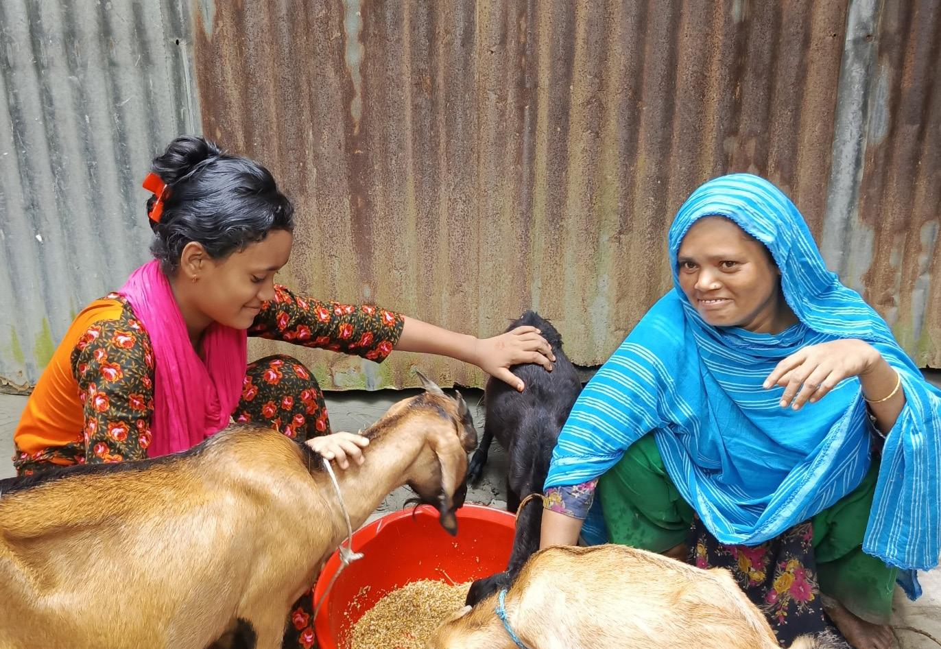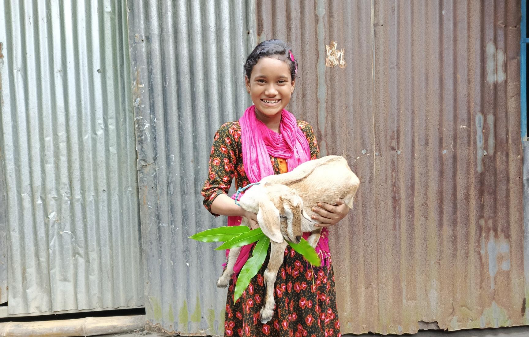 In addition to goat-rearing, Kolpona has expanded into other income-generating activities like homestead gardening and poultry farming. The project also helped her eldest daughter, Aysha, continue her education by providing a stipend and regularly monitoring her progress. Kolpona is now fully committed to her daughter’s education and determined not to marry her until she finishes school, reflecting her new understanding of the negative impacts of early marriage.