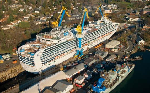 This page: A cruise ship undergoes repairs at Victoria Shipyards in Esquimalt.