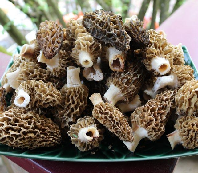 Jody “ shaggy JaCk ” f ranklin, named for Shaggy Mane, Shaggy Parasol and Slippery Jack mushrooms, was a professional forager before beginning his own mushroom enterprise. Since 2018, he has taught more than 500 students how to identify, harvest, cook and preserve edible mushrooms. His most popular course, Wild Mushroom Foraging for Beginners, runs from August to December and includes a three-and-a-half-hour presentation followed by two-and-a-half hours of forest foraging. His Forage to Feast tours run from September until November with a three-hour foraging excursion followed by a forest cookout with visiting chefs like Benjamin Berwick from Dachi Restaurant in Vancouver. Students become the chefs’ prep cooks for tastings that feature locally sourced mushrooms, vegetables, meats and wines or ciders.