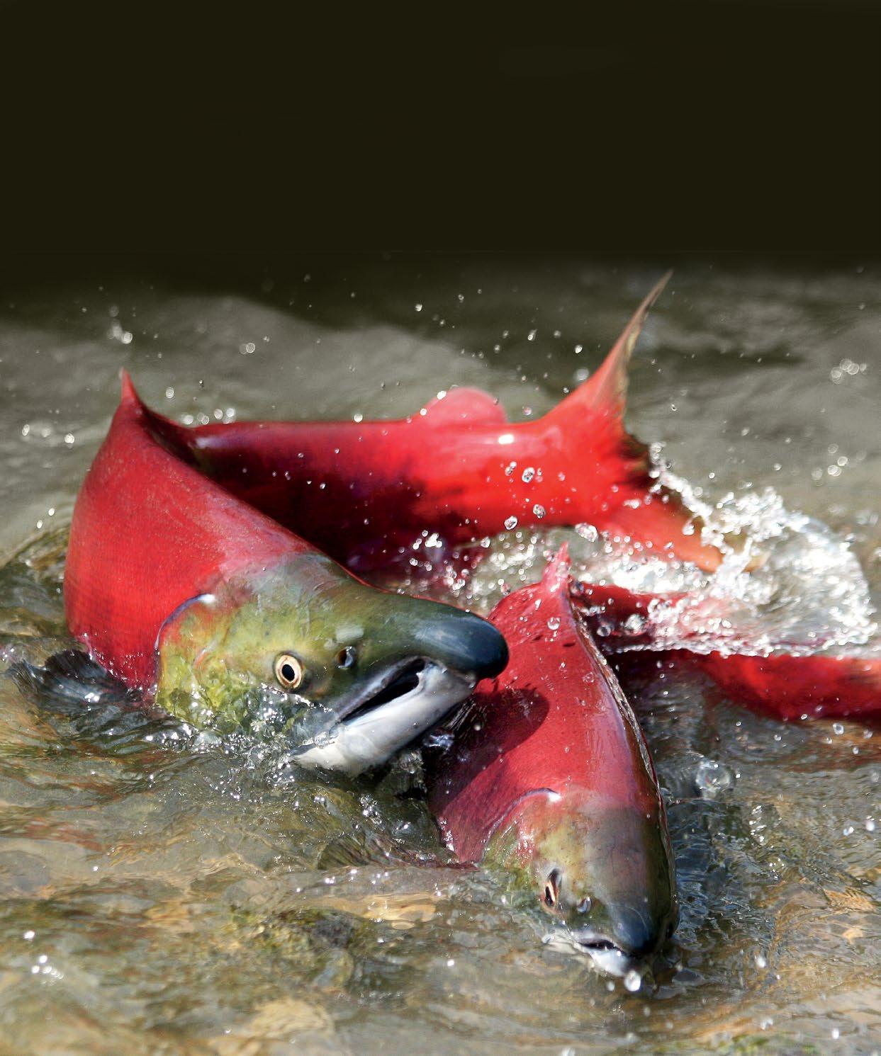 stirring as the sight of wild Pacific salmon returning to spawn in the rivers and streams in which they were born years before. Witnessing the phenomenon is both melancholy and uplifting: it serves as a vivid reminder of our own brief mortality, but also of the magnificent capacity of nature to regenerate itself.