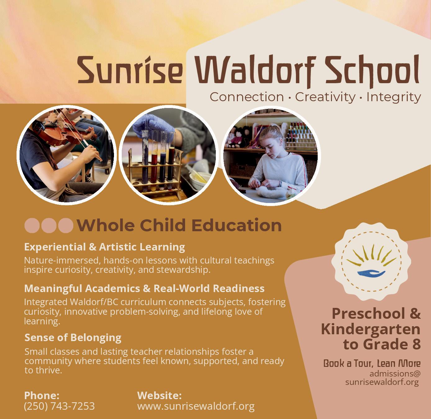 Sunrise Waldorf develops curious, creative, capable learners through experiential, arts-integrated learning, meaningful academics and strong relationships cultivating problem-solving, stewardship, confidence and readiness for life beyond school.