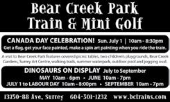 Playland; West Coast Railway Heritage Park; Museum of Anthropology; Burnaby Village Museum; Honeybee Centre Farm; Gulf of Georgia Cannery National Historic Site; Maplewood Farms; Rogers Arena Tour; Aldor Acres Dairy Centre; Raptor Ridge Birds of Prey; Theatre Under The Stars; Vancouver Police Museum; Opera Workshop; Harbour Cruise; Stanley Park Horse-Drawn Tours; Kidtopia Family Sports Day; CircusWest – CirKids … and the list goes on!