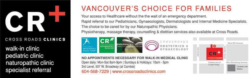 An Integrated Health Care Clinic at Broadway and Cambie, wellness for the whole family! crossroadsclinics.com 350-507 West Broadway, Vancouver