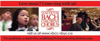 Join in for a delightful afternoon of song as the Vancouver Bach Children’s Chorus & Youth Choirs come together. Music Director Marisa Gaetanne will be joined by conductors Paula Kremer and Catherine Campolin, in this diverse showcase of the vocal talents and artistic efforts of hundreds of gifted children and young adults. www.vbcc-vbyc.ca