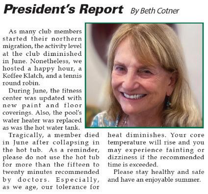 I encourage every resident to check their online directory listing for accuracy. Additions, changes, or corrections to the online directory may be requested by filling out the change form on the online Residents Directory page or by e-mail to: landings.directory@ gmail.com.