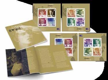 Bowie authority and author Nicholas Pegg’s astute perspective on David’s performing career and chapters devoted to each of the stamp subjects are complemented by entertaining and